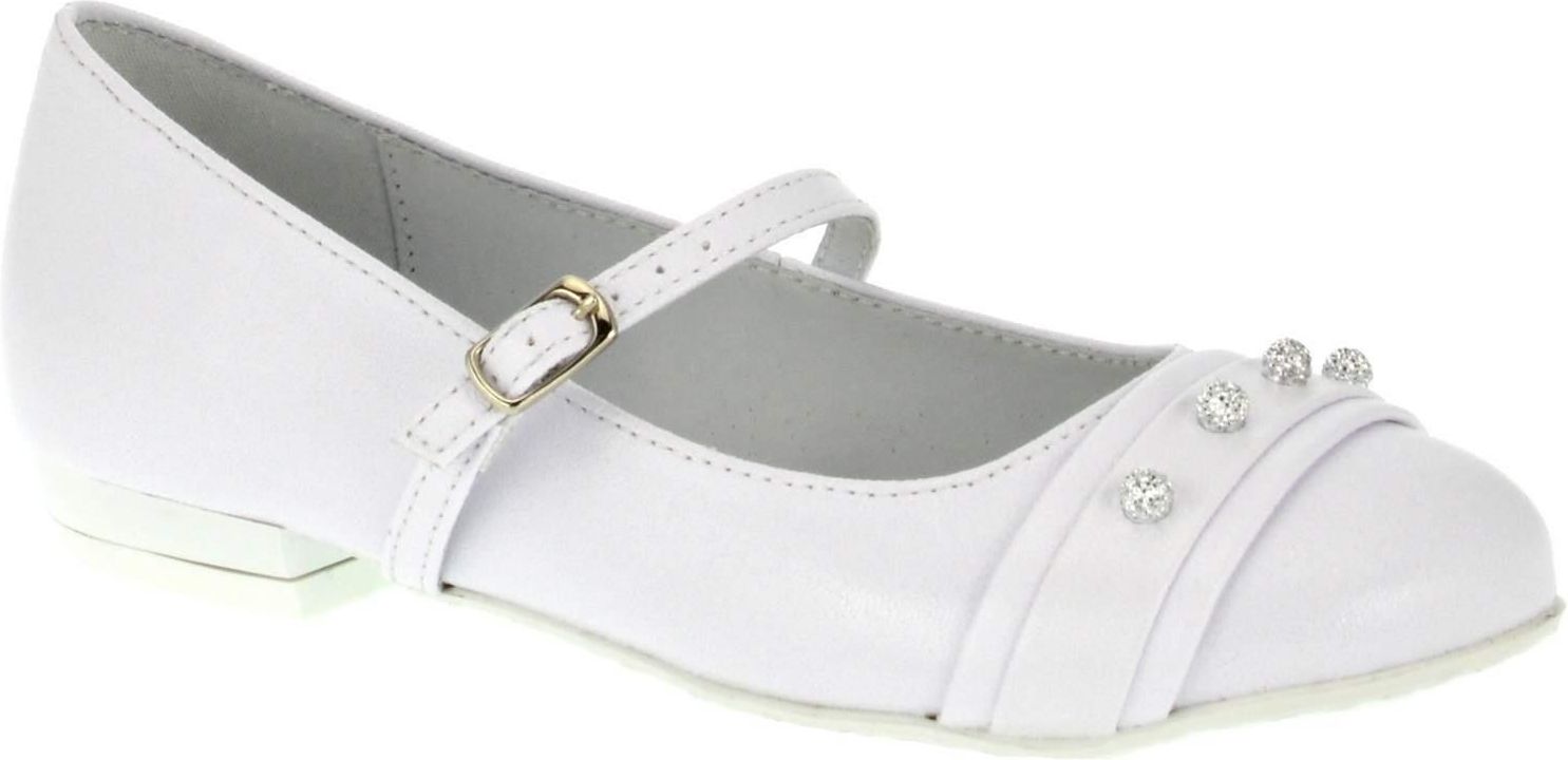 Białe balerinki marki Zarro. Idealne na komunie jak i inne ważne okazje. Ozdobione błyszczącymi kuleczkami.