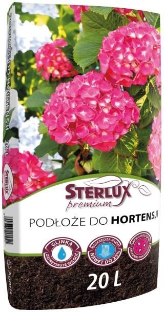 PODŁOŻE DO HORTENSJI PREMIUM 20L STERLUX Podłoże przeznaczone do uprawy wszystkich odmian hortensji oprócz hortensji o kwiatach w kolorze niebieskim. SPOSÓB UŻYCIA Sadzenie do pojemników Przygotować czystą donicę z otworami drenującymi. Na dnie donicy umieścić warstwę drenażu, np. żwiru lub kamyczków. Rozluźnić podłoże przed użyciem. Wypełnić donicę podłożem do połowy, a następnie delikatnie umieścić w niej roślinę. uzupełnić donicę podłożem do wysokości 1,5 cm poniżej jej krawędzi. Podłoże ostrożnie ugnieść, uważając przy tym, aby nie uszkodzić korzeni. Roślinę obficie podlać wodą. Sadzenie do gruntu Przygotować wystarczająco duży dołek w gruncie, tak by korzenie sadzonki zmieściły się w nim swobodnie oraz głęboki na tyle, żeby zwisały w nim niemal pionowo. Umieścić roślinę w dołku i delikatnie obsypać podłożem. Ugnieść podłoże wokół nowo posadzonej rośliny, a następnie obficie podlać wodą. SKŁAD I WŁAŚCIWOŚCI Podłoże na bazie torfu oraz kory i włókna drzewnego, odkwaszone kredą. Zawierają hydrożel i glinkę, a także dawkę startową nawozu wieloskładnikowego NPK oraz nawóz otoczkowany o przedłużonym działaniu. pH w H2O 5,0-6,0 Zasolenie w H2O nie więcej niż 2 g NaCI/dm3 ZALECENIA Nie stosować jako domieszki używanego wcześniej podłoża. Rośliny należy podlewać regularnie, nie dopuszczając do przesuszenia, jak również zalania podłoża. Podłoże zawiera startową dawkę nawozu, dlatego też zaleca się po okresie około dwóch tygodni od posadzenia, by rozpocząć regularne nawożenie roślin. Nawozy należy stosować ściśle wg instrukcji ich producenta oraz zgodnie z wymaganiami uprawianych roślin. Do uprawy roślin we wczesnych fazach rozwojowych zaleca się stosowanie podłoży do wysiewu firmy Hollas.
