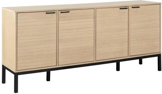 Komoda szeroka Kensington dąb bielony - nowoczesność w twoim domu Prezentujemy elegancką i funkcjonalną komodę Kensington w odcieniu dębu bielonego. Nowoczesna szafka, wykonana z wysokiej jakości płyty MDF oraz forniru dębowego, z pewnością ożywi każde pomieszczenie. Cztery drzwi z dekoracyjnymi lamelami skrywają regulowane półki, umożliwiając efektywne wykorzystanie przestrzeni. Metalowa podstawa dodaje meblowi stabilności, a jej czarny kolor idealnie kontrastuje z jasnym wykończeniem szafki. Meble marki Actona - gwarancja stylu i jakości Marka Actona jest synonimem doskonałej jakości i nowoczesnego designu. Komoda Kensington to jeden z jej flagowych produktów, który łączy w sobie elegancję skandynawskiego minimalizmu z nutą klasycznego uroku. Wykonana z trwałych materiałów, takich jak płyta MDF i fornir dębowy, zapewnia trwałość i odporność na uszkodzenia. Idealna do salonu, sypialni, przedpokoju czy garderoby. Naturalny kolor dębu bielonego - uniwersalność i elegancja w jednym Komoda Kensington w kolorze dębu bielonego to doskonały wybór dla osób ceniących naturalne piękno i prostotę. Jasne wykończenie mebla wprowadza do wnętrza świeżość i przestronność, a jednocześnie łatwo komponuje się z innymi elementami wystroju. Komoda doskonale sprawdzi się zarówno w nowoczesnych, jak i klasycznych aranżacjach. Co powinieneś wiedzieć przed zakupem Komoda Kensington to połączenie nowoczesności i klasycznego uroku. Dzięki naturalnemu kolorowi dębu bielonego, wprowadzi do Twojego wnętrza świeżość i elegancję. Wykonana z wysokiej jakości płyty MDF i forniru dębowego, zapewnia trwałość i odporność na uszkodzenia. Dodatkowo, metalowa podstawa gwarantuje stabilność mebla. Szafka posiada cztery drzwi z dekoracyjnymi lamelami, za którymi skrywają się regulowane półki. To rozwiązanie umożliwia efektywne wykorzystanie przestrzeni i pomaga utrzymać porządek. Komoda wymaga samodzielnego montażu. Wszystkie niezbędne elementy i instrukcję znajdziesz w zestawie. Produkt marki Actona, która jest gwarancją doskonałej jakości i nowoczesnego designu.