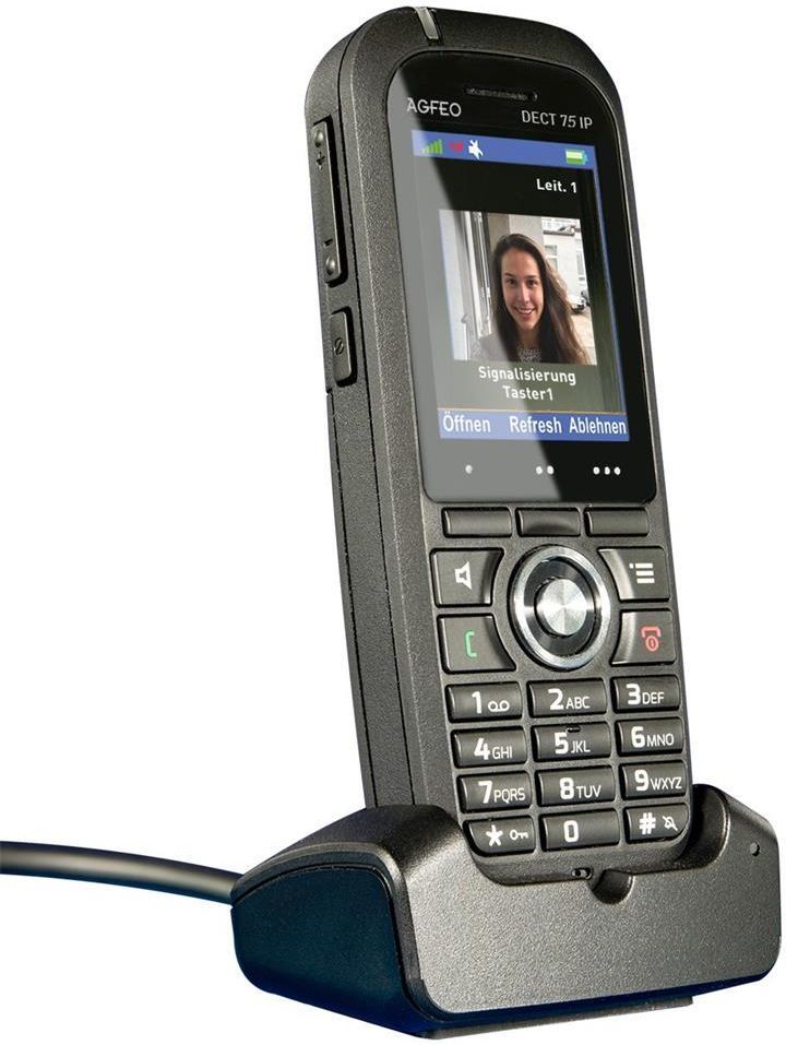 AGFEO DECT 75 IP. Product colour: Black, Handset type: Wired & Wireless handset, Headset connectivity: 3.5mm. Display: TFT, Display diagonal: 5.08 cm (2"). Phonebook capacity: 250 entries. Power consumption (typical): 0.24 W, Standby time: 200 h, Talk time: 17 h. Width: 48 mm, Depth: 22 mm, Height: …