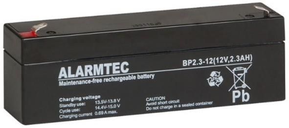 Akumulator 12V 2,3Ah Renomowany producent zapewniający wszechstronne zastosowanie: O najwyższej jakości komponenty składające się na model BP 2,3-12 dba czołowy producent Alarmtec. Model zapewnia napięcie znamieniowe 12V. Jego wykonanie oraz sprawdzone materiały umożliwiają różnorodne użytkowanie m.in. w: Systemach alarmowych i przeciwpożarowych, oświetleniu awaryjnym, kasach i drukarkach fiskalnych, centralach telefonicznych, jako zasilanie awaryjne automatyki i zabezpieczeń. Najważniejsze cechy Model BP 2,3-12 jest wyjątkowo szczelnym, bezobsługowym akumulatorem ołowiowo-kwasowym. Technologia AGM (Absorbed Glass Mat) zapewnia stosunkowo niską rezystencję wewnętrzną, dzięki czemu napięcie na zaciskach jest wyższe, a realny czas pracy dłuższy względem innych rozwiązań. Akumulator BP 2,3-12 posiada elektrolit wchłonięty w separatory z włókna szklanego o wielkiej porowatości, znajdujace się między płytami. Specyfikacja Napięcie znamionowe 12 V Pojemność znamionowa 2,3 Ah Żywotność projektowana 3 - 5 lat w 20 C wg EGSC Rezystancja wewnętrzna ≤ 90mΩ Napięcie ładowania w 25°C Praca buforowa 13,65 V ± 0,15 V Praca cykliczna 14,70 V ± 0,30 V Prąd ładowania Zalecany 0,23 A Maksymalny 0,69 A Maks. prąd rozładowania (5s) 34,5 A Zakres temp. otoczenia Składowanie -15°C - 40°C Ładowanie 0°C - 40°C Rozładowanie -15°C - 50°C Typ obudowy Standardowa: ABS UL 94-HB Wymiary: 66x 178x 35mm Waga: około 0,96 kg