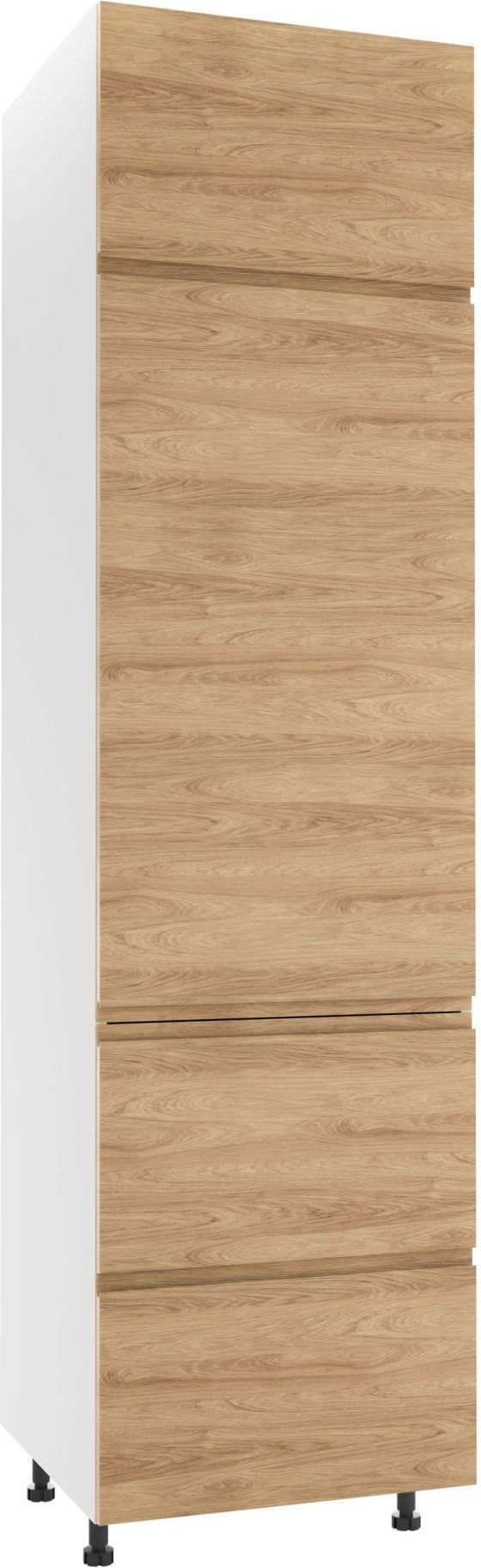 ALBA SŁUPEK WYSOKI PRAWY DS2-60-220 HK-XS MODERNBOX HIKORA to propozycja z kolekcji kuchni Komfort imitującej meble kuchenne z drewna naturalnego. Słupek do kuchni pokrywa ciepły odcień brązu oraz struktura usłojenia. Prezentowany model posiada dwie pojemne szafki z drzwiami uchylnymi prawostronnie oraz dwie szuflady na prowadnicach Modernbox. Słupek do kuchni wyróżnia się systemem cichego domknięcia oraz frezowanymi uchwytami, które podkreślają nowoczesny charakter kolekcji kuchni Komfort.