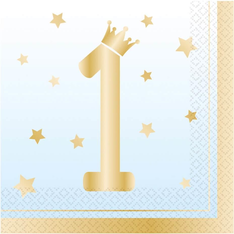 SERWETKI JEDNORAZOWE NA ROCZEK – ZŁOTA KORONA & CYFRA "1" Dodaj elegancji i uroku pierwszym urodzinom swojego maluszka! Te piękne jednorazowe serwetki z motywem złotej cyfry „1” i korony to idealna dekoracja na roczek! Opis produktu Motyw: Złota cyfra 1 z koroną oraz złote gwiazdki Kolorystyka: …