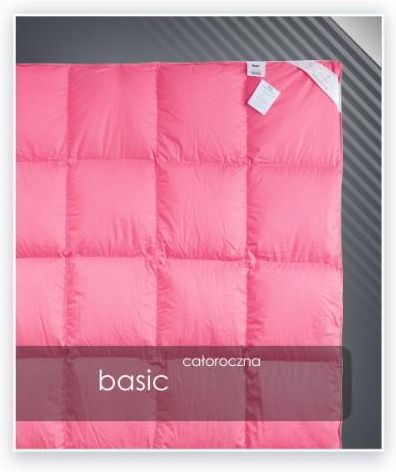 AMZ Basic - tradycyjna kołdra z wypełnieniem z pierza Basic to wyroby naturalne, wyprodukowane z wysokiej jakości surowców i materiałów, które zapewniają odpowiednią cyrkulację powietrza oraz optymalny poziom wilgotności. Wysokiej jakości bardzo gęste tkaniny, czyste wypełnienie oraz tradycyjne metody produkcji gwarantują trwałość oraz komfortowe użytkowanie. Kołdra o budowie kasetonowej - szyta w technologii zimnego szwu zapewniającemu lepszą cyrkulację powietrza. Kratki są szczelnie zamknięte uniemożliwiając przemieszczaniu się wypełnienia. Wykończona bizą, która poza walorami estetycznymi dodatkowo uszczelnia kołdrę. Poszycie kołdry Basic to mocny inlet - 100% bawełna o gramaturze 185g/m². Jest to tkanina zarówno miła i przyjemna w dotyku, jak również bardzo wytrzymała. Wykorzystanie tkaniny o tej gęstości jest idealnym kompromisem pomiędzy komfortem, a trwałością. Kołdra dostępna w wersji całorocznej oraz zimowej. Kołdry w rozmiarach większych niż 155x200 cm posiadają tzw. doszywkę. Wynika to z tego, iż tkanina użyta w tych kolekcjach występuje w szerokości 165 cm. Dlaczego warto wybrać kołdrę Basic? bezpieczeństwo dzięki poddaniu wypełnieniu procesowi EEC ultra delikatna tkanina pokryciowa nadająca miękkości 2-letnia gwarancja producenta produkt polski w całości ręcznie produkowany z dbałością o każdy detal Wypełnienie kołdry Kołdra Basic AMZ została wypełniona najwyższej jakości pierzem gęsim (70%) z domieszką delikatnego puchu (30%). Użyty puch jest surowcem wysokiej jakości, posiadającym wysoką wyporność. Dzięki czemu kołdra jest lekka przy zachowaniu wysokiego współczynnika termoizolacji oraz niesamowicie sprężysta. Wypełnienie przygotowane jest zgodnie z normami europejskimi i jest całkowicie bezpieczne. Kołdra BASIC AMZ specyfikacja Dostępne kolory – biały, kremowy, różowy Tkanina – inlet bawełniany 100% Szycie i wykończenie – kołdra o kasetonowej budowie szyta metodą zimnego szwu Wypełnienie – pierze gęsie 70% Całoroczna: 135x200 - 1100g, 155x200 - 1200g, 180x200 - 1500g, 200x200 - 1800g, 200x220 - 2000g Ciepła: 155x200 - 1500g Rozmiary standardowe 135x200 cm 155x200 cm 180x200 cm 200x200 cm 220x200 cm 240x220 cm