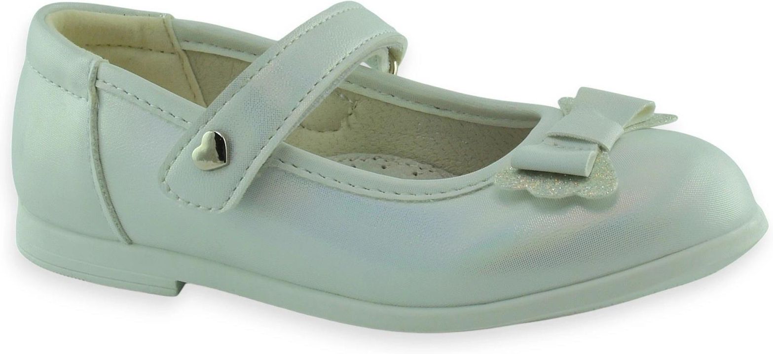 Modne, komfortowe balerinki dla stylowej dziewczynki z kokardką na przodzie. Pełne uroku balerinki w kolorze białej perły dodadzą elegancji każdej dziewczęcej stylizacji. Doskonałe na wiosnę i lato, na co dzień oraz na wyjątkowej okazje.