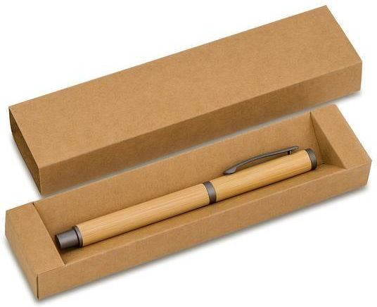 Bambusowy długopis w pudełku Machino, beżowy Stan: Nowy Wymiary (szer./wys./gł.) [mm]: 180 x 40 x 20 Materiał: Bambus Kolory: Beżowy Waga (kg): 0.04 Bambusowy długopis w brązowym pudełku. Wkład w kolorze niebieskim. Wymiary: kartonowe etui: S180 x W40 x G20 mm, długopis: S138 x W11 x G11 mm.