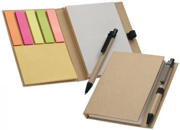 Notesik z karteczkami do markowania ST. LOUIS Brązowy Kolory: brązowy Wymiary: 12,3 x 13,8 x 1,6 Waga: 0,151 kg Kolor: brązowy Stan: Nowy Praktyczy i przyjazny środowisku gadżet zawiera 200 dużych kartek samoprzylepnych, 25 żółtych karteczek średniej wielkości i po 25 małych karteczek w 5 różnych kolorach, a także długopis. Twoje logo wydrukujemy na okładce.