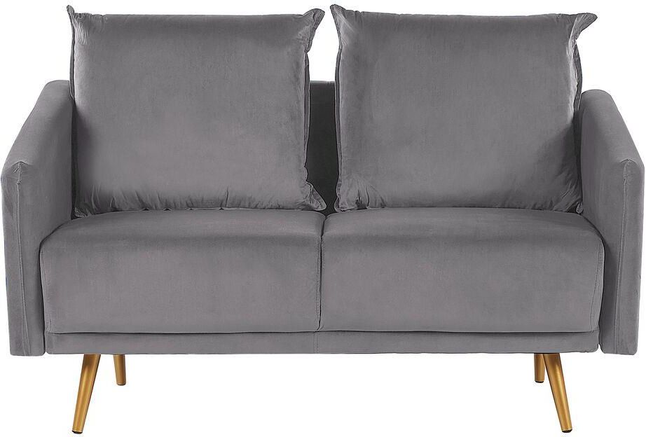 Beliani Retro sofa 2-osobowa welurowa szara miękkie poduchy złote nóżki Maura Gdynia