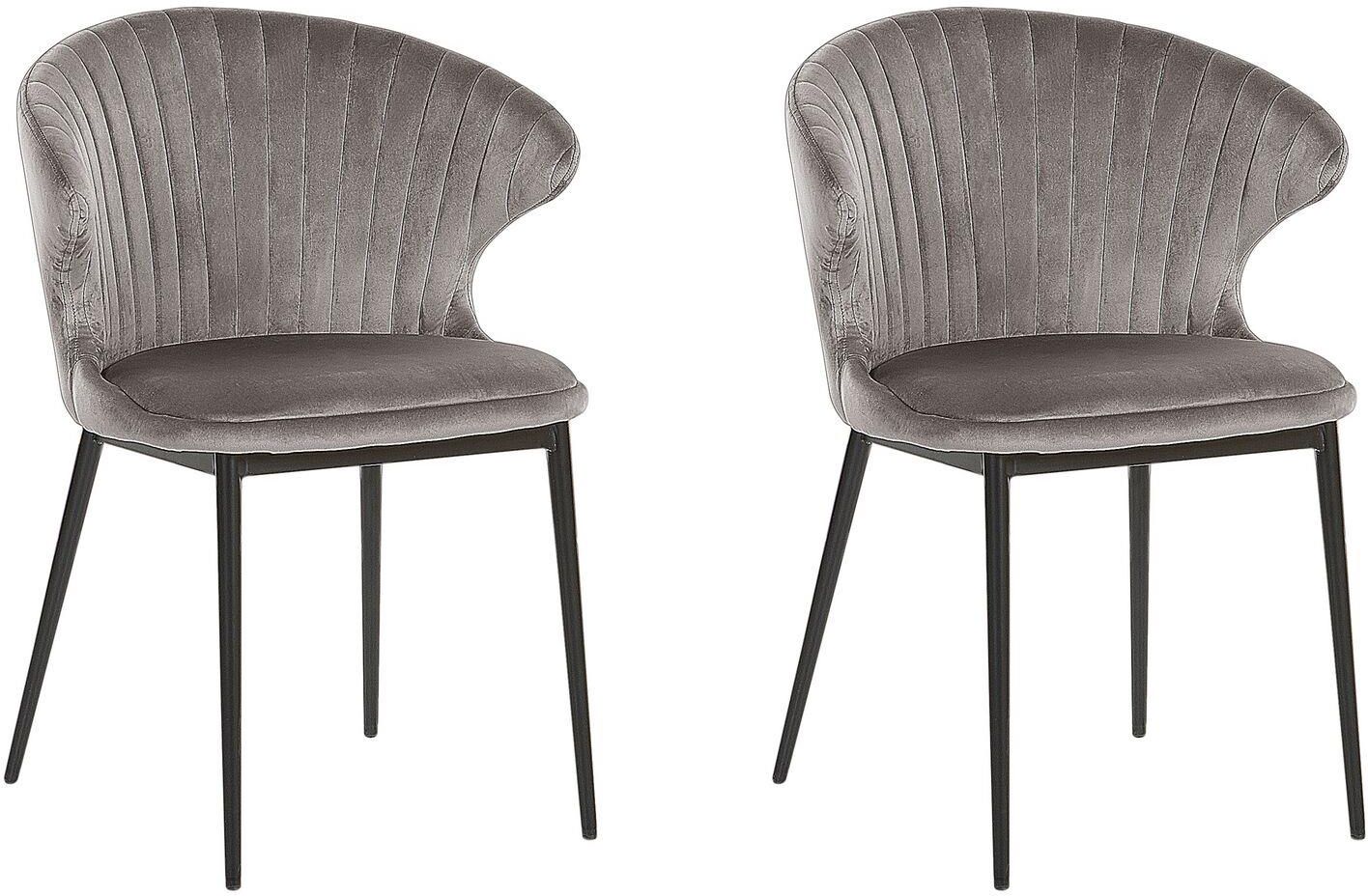 Beliani Zestaw 2 krzeseł jadalnianych welurowy szary czarne metalowe nogi Augusta Gdynia