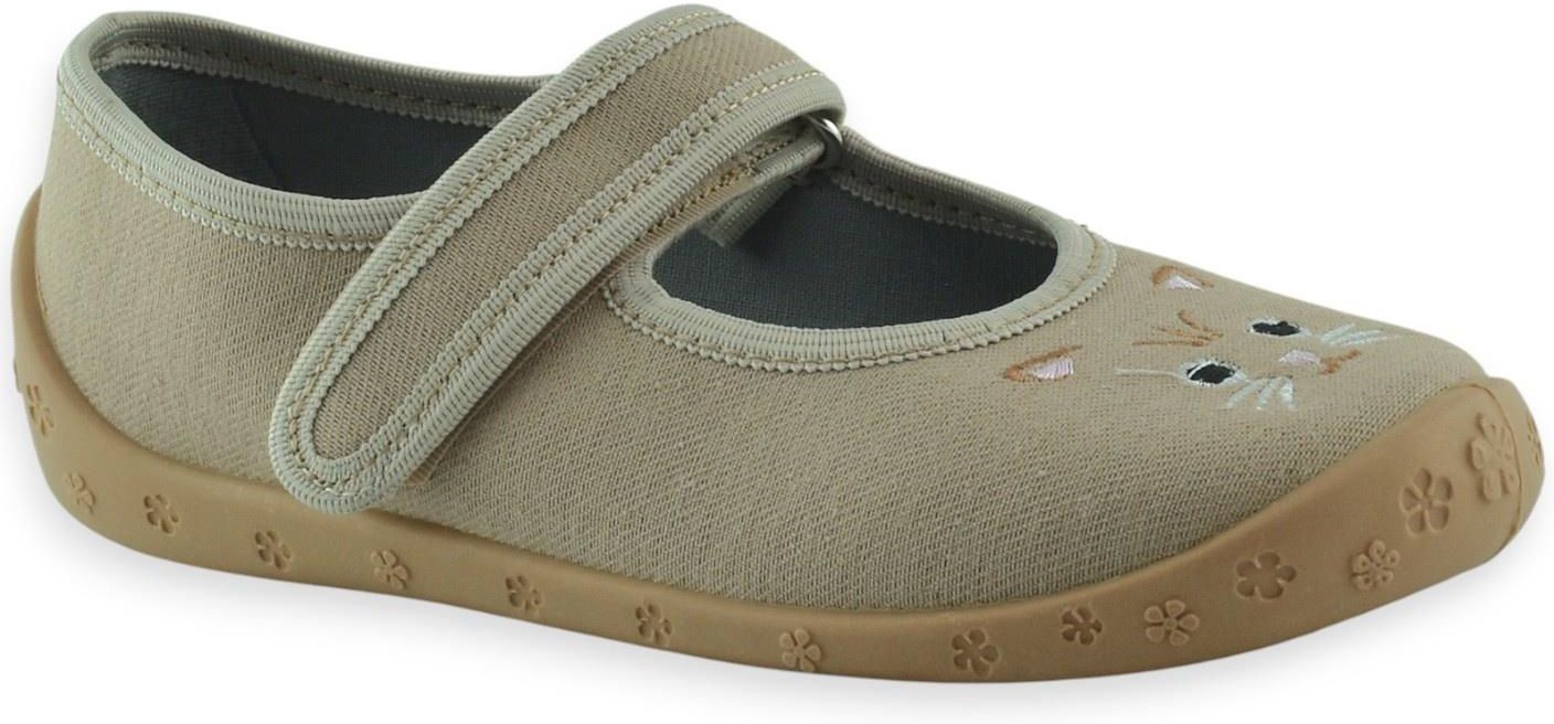 Beżowe, stonowane kapcie dla dziewczynki, wykonane z myślą o codziennym komforcie. Posiadają wyjątkowo miękką, elastyczną i oddychającą podeszwę, która nie obciąża stóp. Idealne jako obuwie zmienne do przedszkola lub szkoły.