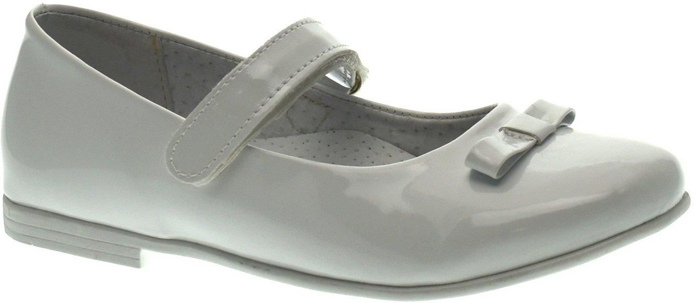Gładkie balerinki dla dziewczynki z lakierowaną cholewką. Posiadają elegancką kokardkę z przodu.