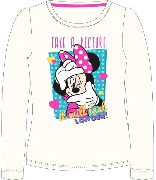 Kremowa bluzka dla dziewczynki z długim rękawem, ozdobiona kolorowym nadrukiem ukochanej Myszki Minnie. Wykonana z miękkiej bawełny, doskonała na każdą porę roku – idealnie sprawdzi się zarówno w przedszkolu, jak i w szkole. Skład : -100% bawełna