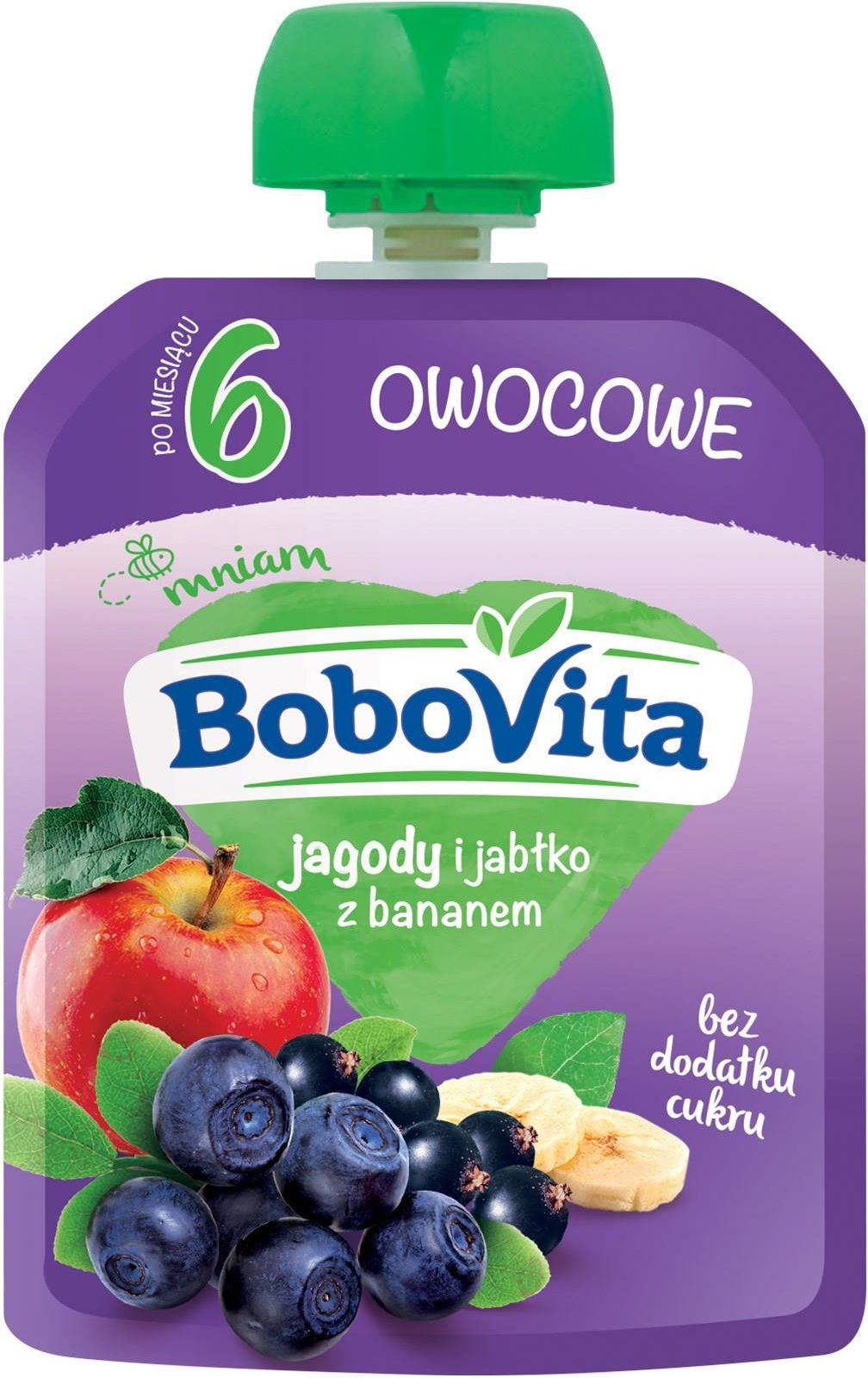 Musy owocowe BoboVita Dzięki innowacyjnym, przezroczystym opakowaniom możesz zobaczyć kolor  i konsystencję apetycznego produktu, przez co jedzenie z tubki może stać się nie lada frajdą.  Jakość naszych owoców W żywieniu niemowląt i małych dzieci nie ma miejsca na przypadek. Dbamy o całą drogę powstania posiłków BoboVita - od ziarenka, z którego wyrośnie owoc, po transport aż do gotowego produktu. Składniki: Jabłko 51,8%, banan 29,5%, czarna porzeczka 9%, jagoda 8%, czarna marchew 1,7%. Mam, które przetestowały owoce w tubkach BoboVita poleciłoby je innym Mamom.* *Hasło oparte na opinii wyrażonej przez 100% spośród 648 mam z dziećmi w wieku powyżej 6. miesiąca życia, które testowały produkty BoboVita w tubkach w ramach badania realizowanego przez TRND w okresie maj - lipiec 2018 r.  Czy wiesz, że . . .  Musy owocowe BoboVita w tubkach są praktyczne w przechowywaniu, wygodne i lekkie. Świetnie nadają się do zabrania na spacer czy plac zabaw. To pełne owoców zdrowe przekąski, które uzupełniają codzienną dietę maluszka.  Czy wiesz, że . . .  Owoce wykorzystywane w produktach BoboVita spełniają nawet do  3000x*   bardziej restrykcyjne normy niż owoce przeznaczone dla dorosłych. *Dotyczy norm dla pestycydów w owocach. Żywność dla niemowląt i małych dzieci spełnia normy jakości i bezpieczeństwa produktu wynikające z przepisów prawa europejskiego i krajowego. Normy te są o wiele bardziej restrykcyjne w porównaniu z żywnością ogólnego przeznaczenia. Poznaj wszystkie smaki