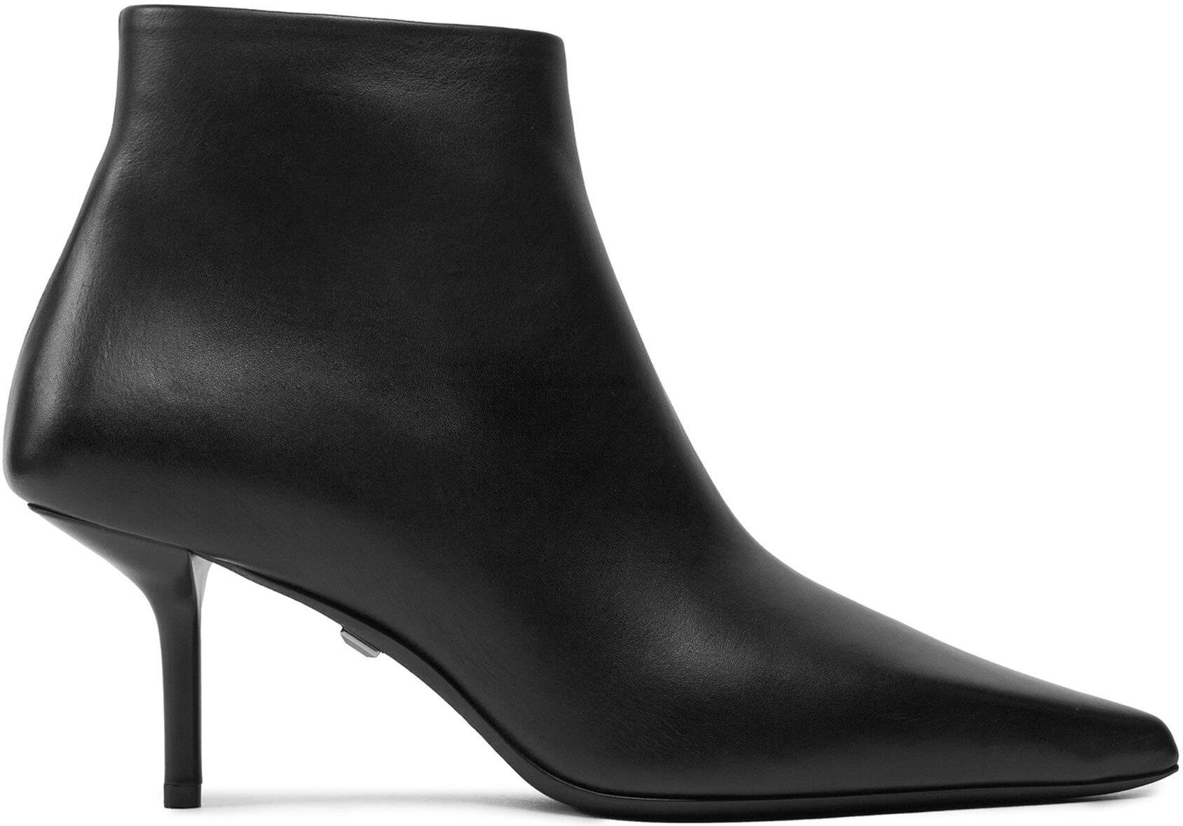 Damskie botki Max Mara – kwintesencja elegancji i stylu. Wykonane są z najwyższej jakości naturalnej skóry licowej, która zapewnia trwałość i luksusowy wygląd. Szpiczasty nosek oraz szpilka dodają wyrafinowanego charakteru, idealnego na eleganckie okazje. Botki wyposażone są w wygodne zapięcie na suwak z boku, ułatwiające ich zakładanie i zdejmowanie. Wnętrze z miękkiej skóry gwarantuje komfort noszenia przez cały dzień. Wybierz botki Max Mara i podkreśl swój indywidualny styl!