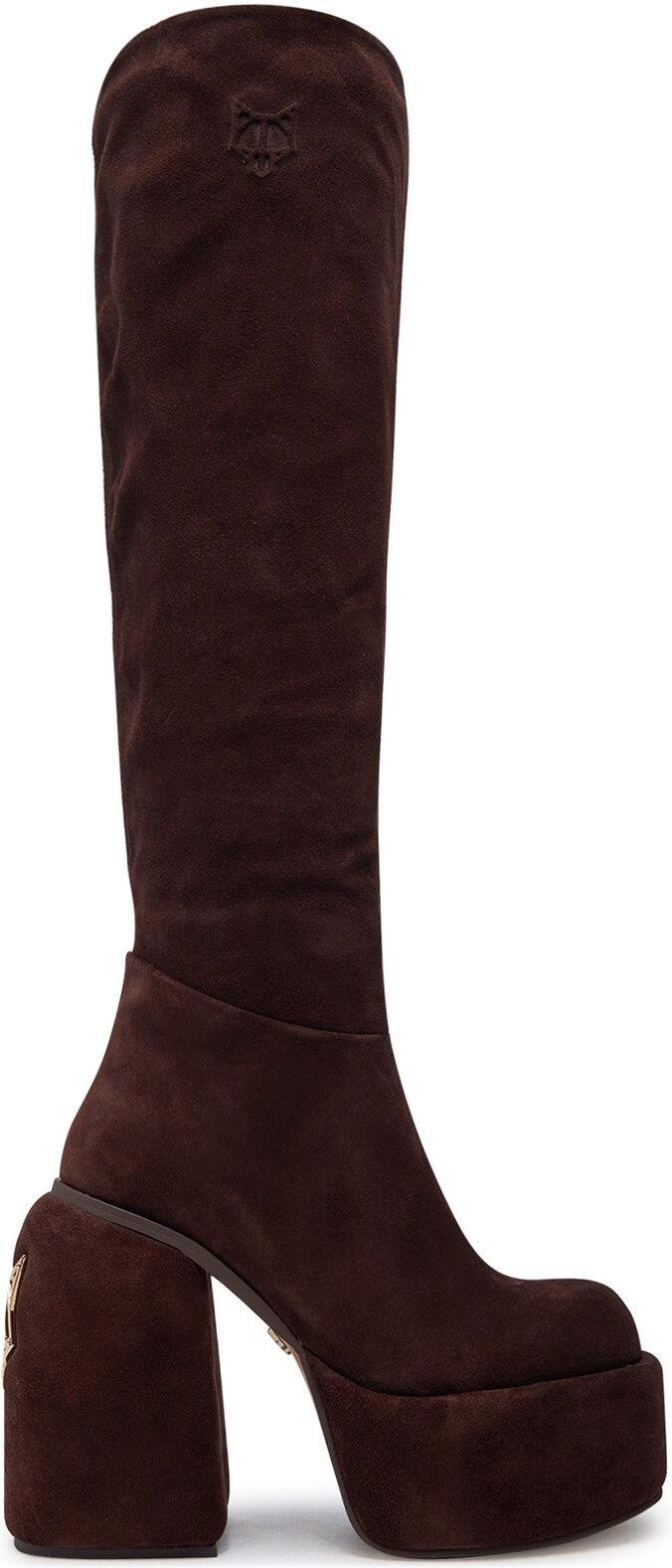 Wzbogać swoją garderobę o unikalne kozaki marki Naked Wolfe! Wykonane z eleganckiego zamszu, te damskie buty zachwycają nowoczesnym designem i oryginalnym geometrycznym obcasem, który doda Twoim stylizacjom wyjątkowego charakteru. Wkładka ze skóry zapewnia komfort noszenia, sprawiając, że możesz cieszyć się wygodą przez cały dzień. Te kozaki to idealne połączenie szyku i funkcjonalności – doskonały wybór dla kobiet, które kochają modę i nietuzinkowe detale!