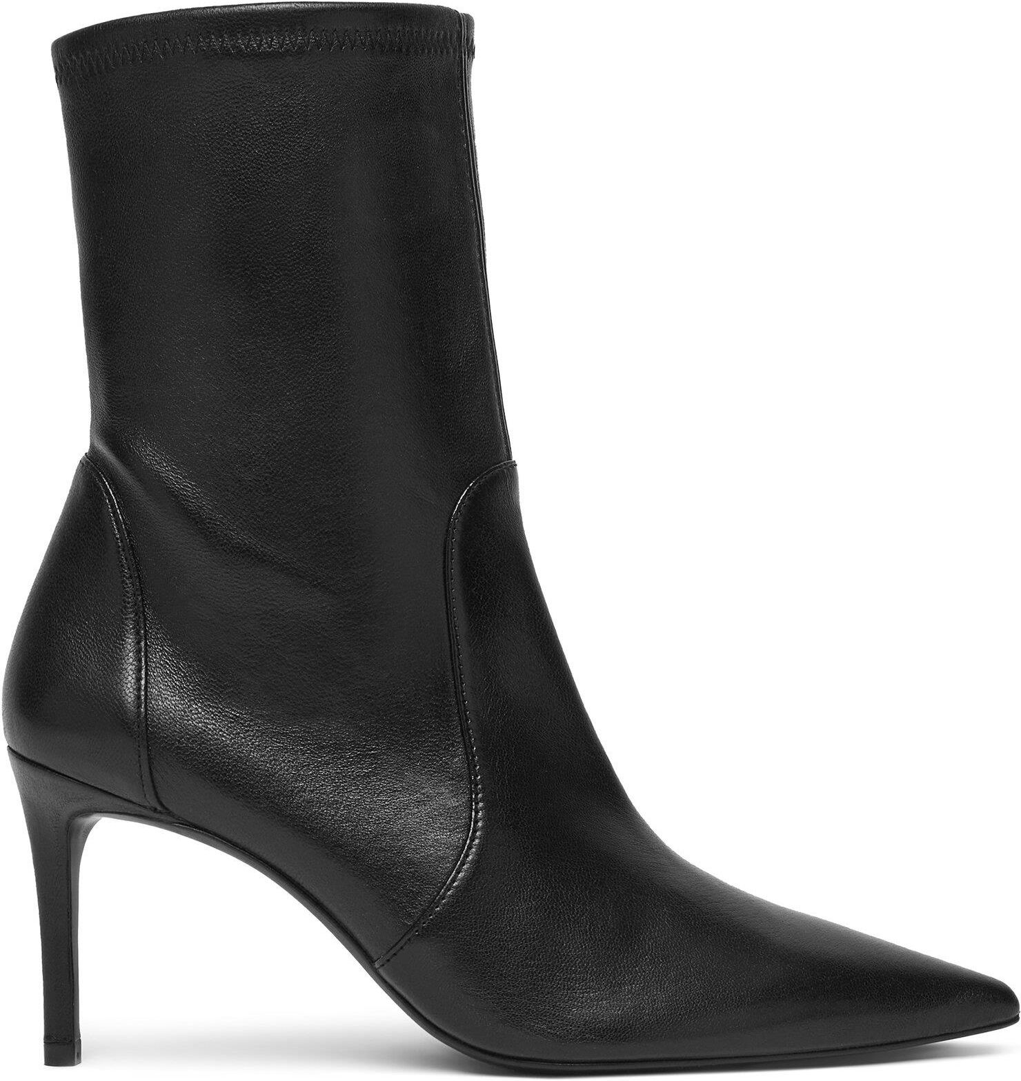 Dodaj szyku swoim stylizacjom z wyjątkowymi botkami damskimi od luksusowej marki Stuart Weitzman! Wykonane z najwyższej jakości skóry naturalnej licowej, zachwycają elegancją i precyzją wykonania. Wsuwane botki na szykownej szpilce pięknie podkreślają sylwetkę, dodając kobiecości i klasy każdemu outfitowi. Szpiczasty nosek nadaje im wyrafinowanego charakteru, dzięki czemu sprawdzą się zarówno na co dzień, jak i podczas wyjątkowych okazji. Te botki to doskonały wybór dla kobiet ceniących ponadczasowy styl i komfort noszenia!