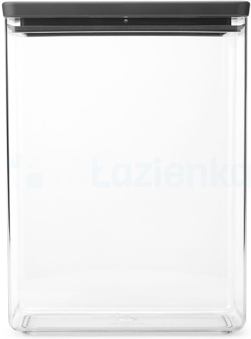 BRABANTIA 229985 - Tasty+ - Prostokątny pojemnik kuchenny - 5,4 l - Dark Grey Zapewnij sobie porządek w kuchni z pomocą pojemnika XXL Tasty+ marki Brabantia. Ten plastikowy pojemnik o pojemności 5,4 litra pozwala na łatwe układanie w stos, zapewniając efektywne wykorzystanie przestrzeni. Dzięki niemu przechowywanie produktów spożywczych stanie się prostsze i bardziej uporządkowane. Maksymalne wykorzystanie przestrzeni Oszczędzaj miejsce w kuchni dzięki prostokątnemu pojemnikowi o innowacyjnej konstrukcji, która umożliwia układanie w stosy. Ten funkcjonalny pojemnik kuchenny zapewnia efektywne wykorzystanie przestrzeni, pozwalając zachować porządek i organizację w Twojej kuchni. Doskonała widoczność Odkryj pojemniki marki Brabantia - nie tylko zapewniające widoczną zawartość, ale także wykonane z bezpiecznego tworzywa sztucznego bez BPA. Dzięki temu łatwo kontrolujesz zapasy i organizujesz swoje kuchenne przestrzenie, bez obaw o szkodliwe substancje. Łatwość czyszczenia Nasze produkty zapewniają łatwe utrzymanie czystości, gdyż można je bezpiecznie myć w zmywarce do naczyń. Dzięki temu oszczędzasz czas i wysiłek, dbając jednocześnie o higienę i świeżość Twoich kuchennych akcesoriów. Teraz czyszczenie staje się proste i wygodne, bez konieczności ręcznego mycia. Utrzymanie świeżości Zastosowana uszczelka silikonowa pozwala dłużej zachować świeżość przechowywanych produktów Idealny sposób magazynowania Dostępne w różnych rozmiarach pojemniki są doskonałym wyborem przy przechowywaniu produktów.