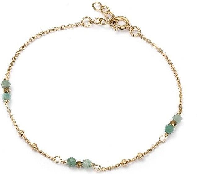 Bransoleta EMERALD Szmaragd 925 mba234 Bransoleta wykonana ze srebra próby 925 , pozłacanego 24 karatowym, żółtym złotem Kamień: Szmaragd + Hematyt (BAZA) Rozmiar kamienia: 2mm /3 mm Długość :17,5 cm + przedłużka do 20 cm