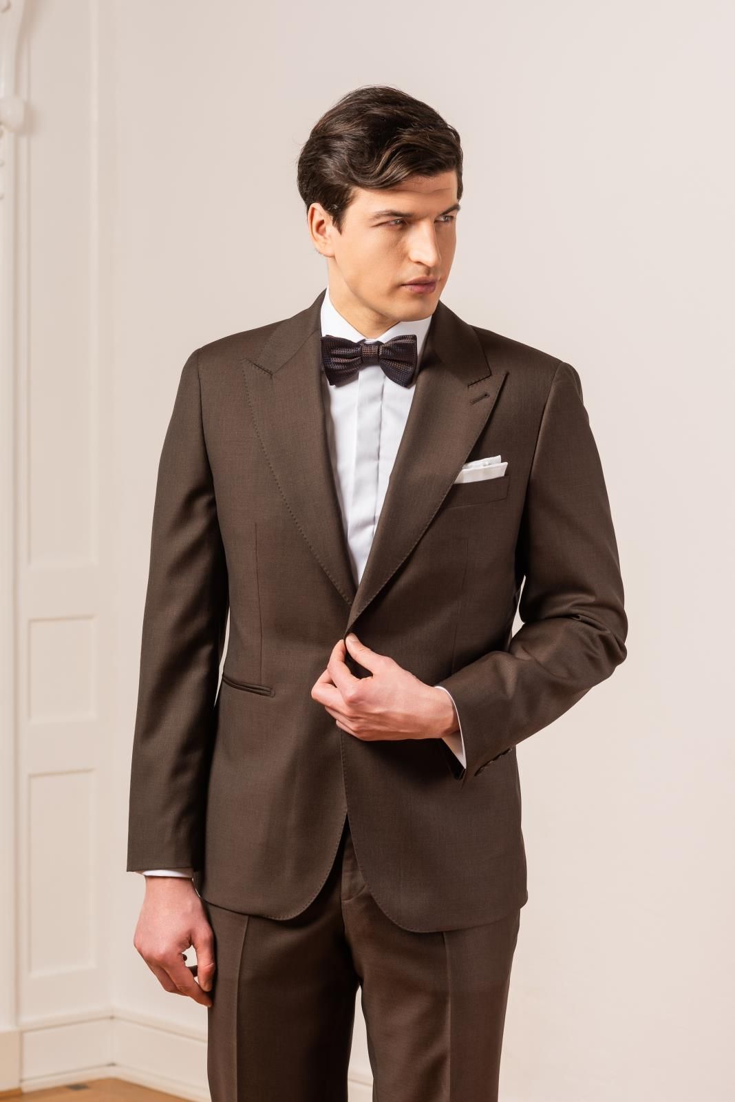 Brązowa marynarka VAN THORN Brązowa marynarka to klasyczny, acz stosunkowo mało popularny pomysł na stylizację, a wielka szkoda. Brązowa marynarka z łatwością może zastąpić w stylizacji marynarki w kolorach beżu, szarości oraz granatu, co nadaje jej niezwykłej uniwersalności. W sezonie wiosenno-letnim warto łączyć ją z przewiewnymi, lnianymi koszulami w wersji smart casual. Uzupełniając marynarkę o brązowe spodnie wykonane z tej samej tkaniny otrzymamy unikatowy zestaw ślubny w stylu retro, rustykalnym bądź boho (w zależności od wybranych dodatków). Marynarka z wełny premium Do uszycia brązowej marynarki VAN THORN wykorzystał wełnę 120's o gramaturze 275g od znanego na całym świecie włoskiego producenta tkanin garniturowych - Carnet. Ta włoska manufaktura dostarcza tkaniny do pracowni krawieckich związanych z szyciem na miarę na całym świecie. Ich bogate doświadczenie jest gwarancją trwałości i przyjemności w użytkowaniu tkaniny z której wykonana jest brązowa marynarka. Marynarka VAN THORN Brązowa marynarka to wynik wieloletniego doświadczenia marki VAN THORN w zakresie szycia na miarę garniturów i marynarek. Zebranie tych doświadczeń skutkuje projektem, który jest odpowiedzią na potrzeby współczesnego mężczyzny chcącego zadbać o swój styl. Jeśli chciałbyś skonfigurować brązową marynarkę wedle własnych upodobań zapraszamy do umówienia się na spotkanie w pracowniach VAN THORN w Warszawie lub Gdyni.