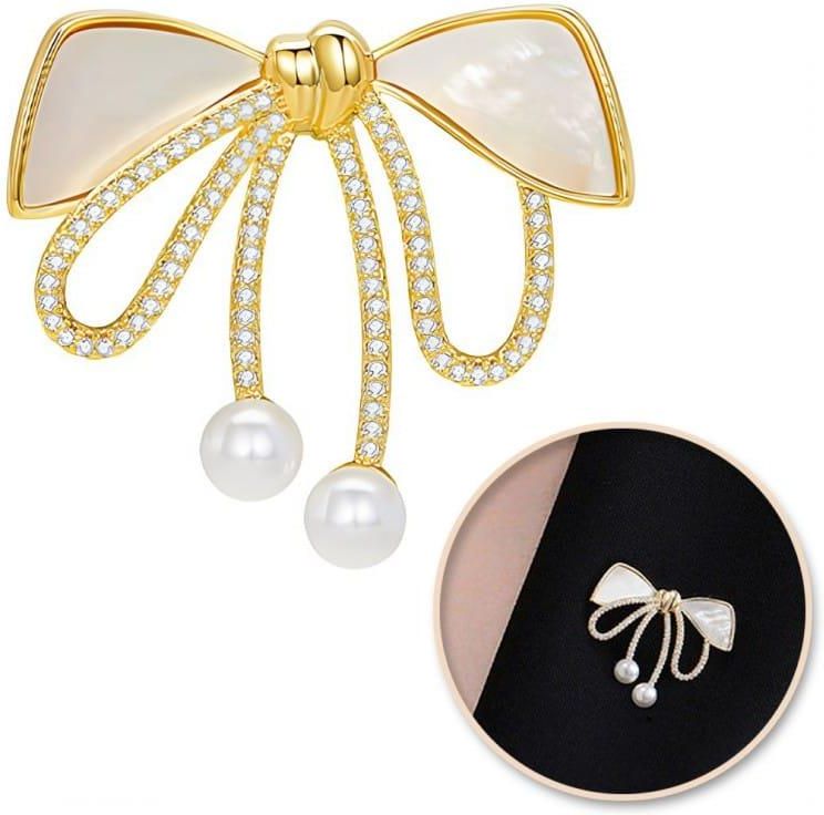 Broszka ozdobna złota KOKARDKA masa perłowa i cyrkonie BZ197 Gdynia