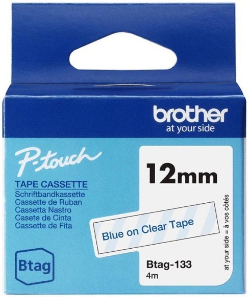 Brother BTAG-133 12 mm szerokości, 4 m długości Wysokiej jakości taśmy firmy Brother Zapewniają trwałe i czytelne etykiety Opis produktu  Brother BTAG-133 Laminowana taśma BTAG-133 firmy Brother, kompatybilna z drukarkami P-touch. Wszechstronna i czytelna, dzięki niebieskiemu nadrukowi na przeźroczystym tle. Stanowi przydatne narządzenie do znakowania zarówno w domu, w biurze, jak i w innych miejscach. Kompatybilne z Brother P-touch PT-N10, PT-N20, PT-N25BT. Więcej informacji o produkcie  Brother BTAG-133 Sprawdzi się zarówno w domu, biurze jak i w innym miejscu pracy. Laminowana taśma BTAG-133 z niebieskim nadrukiem na przeźroczystym tle. Etykiety mają wszechstronne zastosowanie - od identyfikacji akt osobowych i szafek, przez pamięć USB aż po inne aktywa. Samoprzylepne etykiety są wytrzymałe temperaturowo, odporne na chemikalia, wodę, ścieranie. Mogą być zatem stosowane zarówno wewnątrz jak i na zewnątrz. Taśmy BTAG są łatwe i szybkie w montażu. Występują w wielu kolorach i rozmiarach, a także materiałach. Taśmy BTAG z pewnością sprostają Twoim oczekiwaniom w zakresie etykiet.