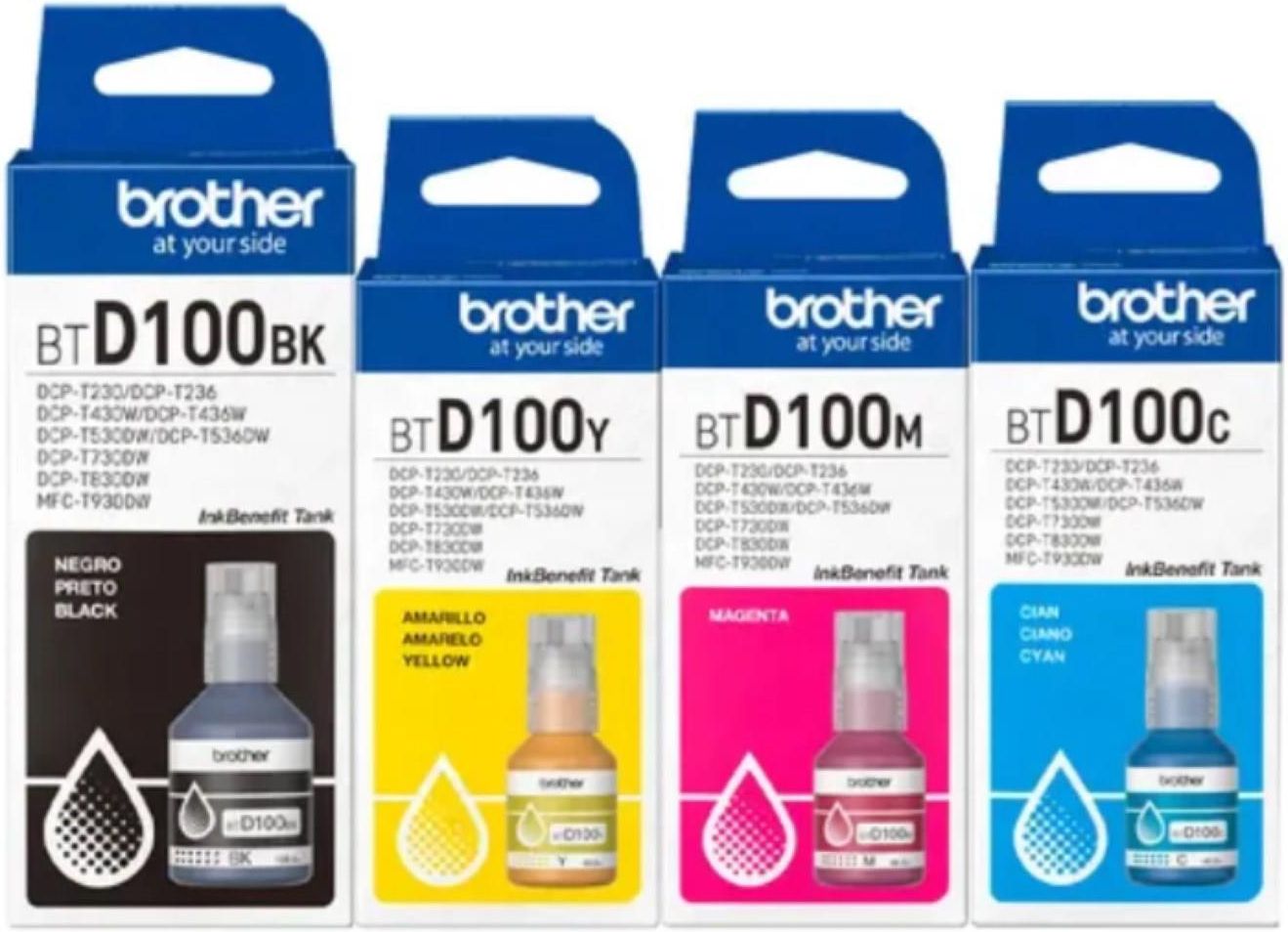 Brother BTD100 CMYK Pozwala na druk do 7500 stron Kompatybilny z wybranymi urządzeniami firmy Brother Poddany rygorystycznym testom w celu zapewnienia niezawodności Używanie oryginalnego tuszu firmy Brother pozwala na zachowanie gwarancji Wysokiej jakości materiały eksploatacyjne firmy Brother Opis produktu  Brother BTD100 CMYK Oryginalny zestaw tuszy w kolorach: czarnym, niebieskim, purpurowym i żółtym został opracowany, aby zapewnić wysoką jakość drukowanych dokumentów, a wydajność butelki do 7500 stron, pozwala na rzadsze uzupełnianie pojemników na tusz. Napełnij zbiornik i ciesz się trwałymi wydrukami najwyższej jakości. Kompatybilne z Brother DCP-T230, DCP-T430W, DCP-T435W, DCP-T436W, DCP-T530DW, DCP-T535DW, DCP-T536DW, DCP-T730DW, DCP-T735DW, MFC-T930DW. Więcej informacji o produkcie Brother BTD100 CMYK Zestaw tuszy  BTD100 CMYK  firmy Brother w kolorach: czarnym, żółtym, purpurowym i niebieskim,  został zaprojektowany, aby zapewnić wysokiej  jakości wydruki za każdym razem. Kupowanie tańszych zamienników wydaje się kuszące, należy jednak pamiętać, że wpływają one nie tylko na jakość wydruków, ale również na ważność gwarancji oraz możliwe długotrwałe uszkodzenie drukarki. Oryginalny zestaw tuszy BTD100 CMYK   firmy Brother, sprawi, że twoja drukarka będzie działała prawidłowo, wykorzystując pełnię swoich możliwości.