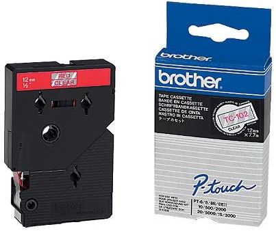 Brother TC-102 – czerwony nadruk na przezroczystym tle, szerokość 12mm Opracowana z myślą o odporności na ekstremalne temperatury i czynniki środowiskowe, wszechstronna taśma TC-102 pozwala na druk trwałych etykiet. Przezroczyste etykiety z czarnym nadrukiem mogą być wykorzystywane zarówno w domu, biurze jak i innych miejscach pracy.  Główne cechy 12mm szerokości, 7,7m długości Standardowa przylepność Wysokiej jakości, oryginalna taśma firmy Brother Zapewnia wyraźne i trwałe rezultaty TC-102 sprawdzi się idealnie w druku ogólnych etykiet na potrzeby biurowe i domowe. Taśma Brother z czerwonym nadrukiem na przezroczystym tle o szerokości 12mm pozwala między innymi na oznaczanie zawartości folderów z dokumentami, teczek archiwizacyjnych i szafek.   Przy wykorzystaniu funkcji druku lustrzanego w kompatybilnej drukarce etykiet P-touch możliwy jest druk oznaczeń na szklane drzwi. Tak wydrukowane oznaczenia można przyklejać na wewnętrznej powierzchni szklanej z tekstem skierowanym do zewnątrz.   Laminowane etykiety Brother P-touch zostały opracowane z myślą o przetrwaniu nawet w najbardziej ekstremalnych warunkach. Etykiety są odporne na działanie temperatury, zdrapywanie, ścieranie, zmywanie, promieniowanie UV czy substancje chemiczne.