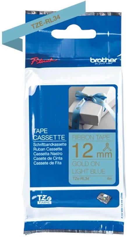 12 mm szerokości, 4 m długości Wysokiej jakości oryginalna taśma Brother Pozwala na uzyskanie czytelnych etykiet Stwórz magiczną oprawę dodając spersonalizowany akcent do prezentów, kartek z życzeniami czy innego rękodzieła, dzięki oryginalnej taśmie wstążkowej TZe-RL34. Nośnik TZe-RL34 pozwala na szybki i niezawodny oraz wyraźny wydruk profesjonalnej jakości. Taśma kompatybilna z drukarkami etykiet P-touch oznaczonymi logo TZ lub TZe na pokrywie drukarki. Kompatybilne z Brother PT-D200, PT-H105, PT-H500, PT-P750W, PT-P900W, PT-P710BT,  PT-D800W, PT-P950NW, PT-D200BWVP, PT-D210, PT-D210VP, PT-D400, PT-D450VP, PT-D600VP, PT-H105WB, PT-H110, PT-P300BT, PT-P910BT, GL200VP, GL-H105, GL-H105VP, PT-1000, PT-1000L, PT-1010, PT-1090, PT-1230PC, PT-1260VP, PT-1280DT, PT1280VP, PT-1290, PT-1750, PT-18R, PT-2030VP,  PT-2420PC, PT-2430PC, PT-2480, PT-2700VP, PT-2730VP,  PT-3600, PT-7100VP, PT-7500VP, PT-7600VP, PT-9500PC, PT-9600, PT-D200VP, PT-H300, PT-P700, PT-P750TDI, PT-1005, PT-1010L, PT-1080, PT-1800, PT1830, PT-1950, PT-2100, PT-2470, PT-9200DX, PT-9400, PT-H75. Użyj taśmy TZe-RL34 razem z drukarką etykiet P-touch, aby wyrazić najlepsze życzenia bliskim na specjalną okazję. Dodaj odrobinę magii, by spersonalizować prezent, kartkę z życzeniami czy rękodziełem, korzystając z taśmy wstążkowej Brother TZe-RL34. Taśma TZe-RL34 pozwoli Ci cieszyć się trwałym i niezawodnym wydrukiem, a także wyraźnym i profesjonalnym standardem drukowania. Złoty nadruk na jasnoniebieskim tle - Brother TZe-RL34 - umożliwi dostarczenie etykiet najwyższej jakości. Luksusowe, błyszczące wykończenie materiałowej wstążki sprawia, że stanowi ona idealne narzędzie do pakowania prezentów lub tworzenia rzemiosła.