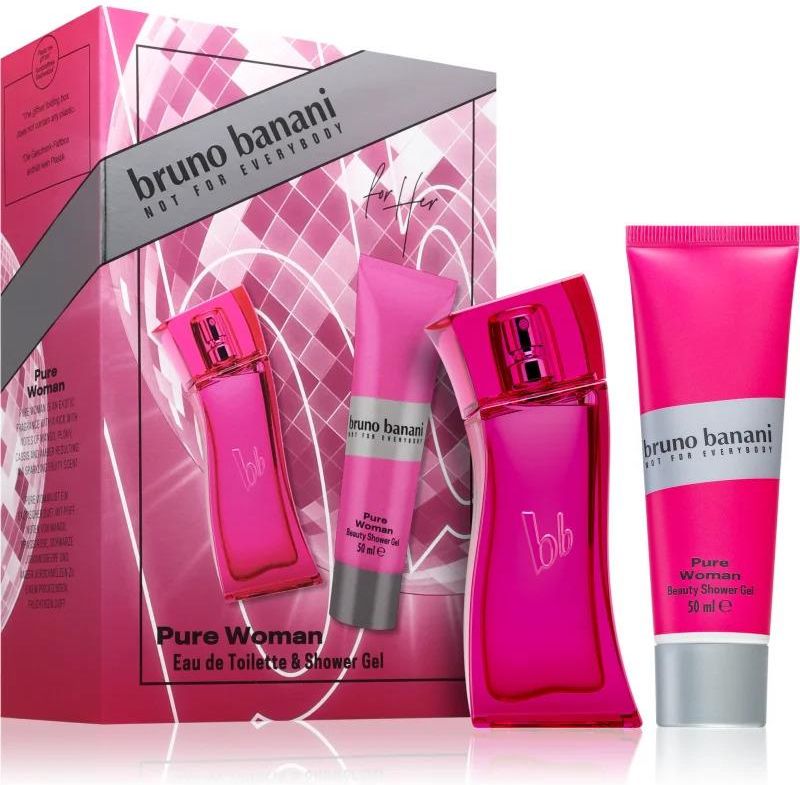 Bruno Banani Pure Woman, 2 szt., Zestawy dla kobiet dla kobiet, Podkręć intensywność swojego ulubionego zapachu. Zestaw perfum dla kobiet Bruno Banani Pure Woman zawiera nie tylko sam zapach, ale także kosmetyki pielęgnacyjne o tej samej nucie zapachowej. Dzięki temu Twoja codzienna rutyna w łazience będzie idealnie spójna, a doznania zmysłowe przedłużone. Właściwości: doskonały pomysł na prezent sprawi radość każdej kobiecie kosmetyki perfumowane przedłużają trwałość zapachu Zawartość zestawu: Bruno Banani Pure Woman woda toaletowa 30 ml Bruno Banani Pure Woman żel pod prysznic 50 ml