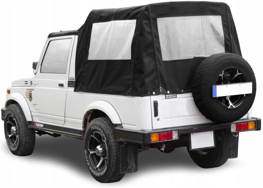 Plandeka / miękki dach. Kolor - czarny Uwaga!! Zdjęcie poglądowe. Zakupiona plandeka może różnić się drobnymi detalami. Indeks - SUZ-01383 Uwaga! Podana w ofercie lista modeli nie gwarantuje, że zakupiona część będzie pasować do Twojego pojazdu. W jednym modelu mogą występować różne części. Prosimy o dobór części wg numeru OE lub wg numeru VIN auta. Marka i model samochodu Suzuki Samurai, 1.0 1988-2004 [SJ410] Suzuki Samurai, 1.3 1988-2004 [SJ413] Suzuki Samurai, 1.9 1999-2004 [SJ419]