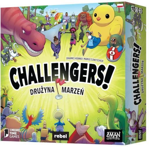 CHALLENGERS: DRUŻYNA MARZEŃ Wygraj turniej w zdobywanie flagi! Wspierany przez Bardkę Kraken właśnie przechwycił flagę. Przeciwnik zaraz zaatakuje… Przygotuj się na kontratak Nekromantką i Gumową Kaczuszką! Nieoczywiste sojusze są tu na porządku dziennym: zespoły kosmitów, potwory z oceanicznych głębin i inne postacie nie z tej ziemi ramię w ramię dążą do wspólnego celu, jakim jest wygranie największego na świecie turnieju w zdobywanie flagi!   Liczba graczy 1-8 osób Wiek graczy Od 8 lat Czas gry Ok. 45 min. Challengers: Drużyna marzeń to wciągająca gra karciana z mechaniką budowania talii, w której stoczysz 7 intensywnych pojedynków, w każdej rundzie ścierając się z innym przeciwnikiem. Na kartach znajdziesz ponad 70 różnych postaci o wyjątkowych zdolnościach: od kosmitów po potwory z oceanicznych głębin. Twoim celem będzie znalezienie wśród nich takiej kombinacji, która zapewni najlepsze połączenie umiejętności i pozwoli wygrać z całkowicie różnymi przeciwnikami. Na czym to polega? Rozgrywka w Challengers składa się z 7 rund, z których każda jest zupełnie nowym pojedynkiem. Rundy dzielą się na 2 fazy: Fazę talii każdy z uczestników rozgrywa na własną rękę i w swoim tempie, dobierając nowe karty i tworząc z nich jak najsilniejszy zestaw. W grze występuje 75 postaci z ponad 40 efektami, dzięki czemu różnorodność jest naprawdę duża i za każdym razem mamy okazję do wypróbowania zupełnie nowych strategii. Fazę meczu rozgrywamy w parach niezależnie od pozostałych graczy. Jedna osoba zaczyna jako posiadacz flagi, podczas gdy druga próbuje ją przejąć, a gdy przedmiot zmienia właściciela, role się odwracają. Atak polega na odkrywaniu kolejnych kart z talii do momentu, aż będą miały siłę równą lub wyższą niż siła karty, która przejęła flagę. Do wyniku liczą się zarówno wartości kart, jak i dodatkowe efekty. Zwycięzca każdego pojedynku zdobywa trofeum z określoną liczbą kibiców. Po 7. rundzie gracze podliczają swoje wyniki, a dwójka, która zebrała najwięcej kibiców, wchodzi do finału.  Dlaczego pokochasz tę grę? Dzięki prostym zasadom i bazowaniu na efektach kart gra świetnie sprawdzi się jako wprowadzenie do mechaniki budowania talii, a tym samym do świata bardziej rozbudowanych planszówek. Poszczególne pojedynki są dynamiczne i intensywne, nie pozwalając graczom na nudę! Gra zawiera 4 wysokiej jakości maty i 336 kart z ponad 70 postaciami, pozwalającymi na budowanie ciekawych, przemyślanych talii bazujących na różnorodnych efektach.       .Rebel4 ul { color:black; } .Galeria img { transition: transform .7s ease-out; } .Galeria img:hover { transform: scale(1.2); }