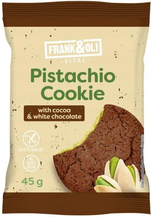 Ciasteczko miękkie pistacjowe z kakao i białą czekoladą bez cukru 45g Frank&Oli Gdynia