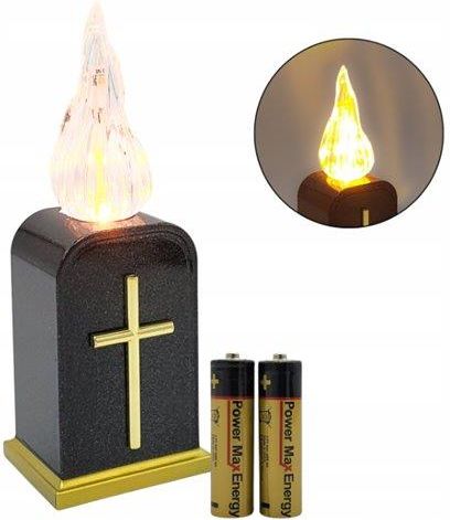 Świeca LED do Zniczy Czarny Wkład na Baterie Złoty Krzyż Nagrobek 16 cm Oferta dotyczy 1 sztuki. Najważniejsze informacje Kolor LED: Ciepły Biały Kolor obudowy: Czarno-Złoty Zasilanie: 2 x R6 ( Baterie AA - niealkaliczne ) Baterie dołączone w zestawie Świeczka jest wykonana z tworzywa sztucznego Świeca ma płomień, wykonany z tworzywa sztucznego, który imituje palącą się świecę (efekt żywego płomienia) Włącznik on-off Może być z powodzeniem stosowana jako świeca LED lub wkład do latarenek. Wodoodporność – IP20 Ekologiczny – nie emituje CO2 Wymiary 16 cm (wysokość) 6 cm (szerokość) 7 cm (długość płomienia) Do 90 DNI CIĄGŁEGO ŚWIECENIA. EKOLOGICZNY – jest świetną alternatywą dla zniczy parafinowych lub olejowych, ponieważ NIE WYDZIELA CO2. Zastosowana dioda LED imituje żywy, mieniący się płomień. WODOODPORNY, dzięki czemu zniesie nawet najcięższe warunki atmosferyczne. Mogą być stosowane również jako samodzielne znicze. Całkowicie bezpieczny - nie spowoduje oparzeń, ani samoistnego podpalenia Wysoka jakość wykonania Wysłany do Ciebie towar będzie każdorazowo sprawdzony pod kątem działania przez naszych pracowników.