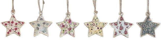Piękna zawieszka bożonarodzeniowa w kształcie gwiazdki. Wspaniale będzie się prezentować na świątecznym drzewku. Przy składaniu zamówienia należy wskazać wzór zawieszki (oznaczony na zdjęciu literą). W przypadku braku wskazania konkretnego wzoru, zawieszki są wysyłane losowo. Wymiar: 6,5 x 0,5 x 6,5 cm Materiał: metal