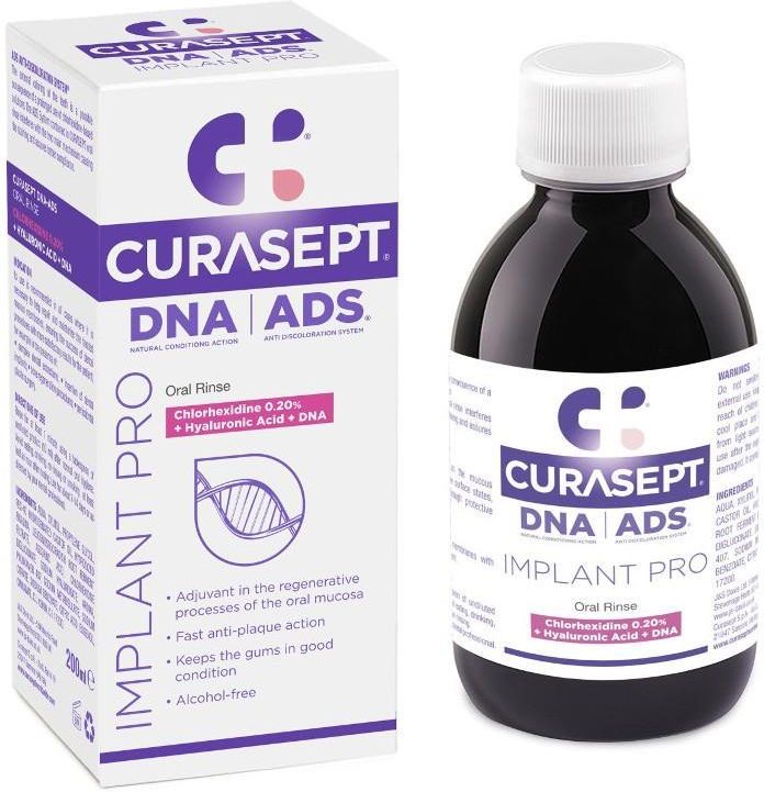 Curasept Implant PRO płyn do płukania ust 200 ml. Curasept Implant PRO najlepsza cena. Curasept kup teraz.