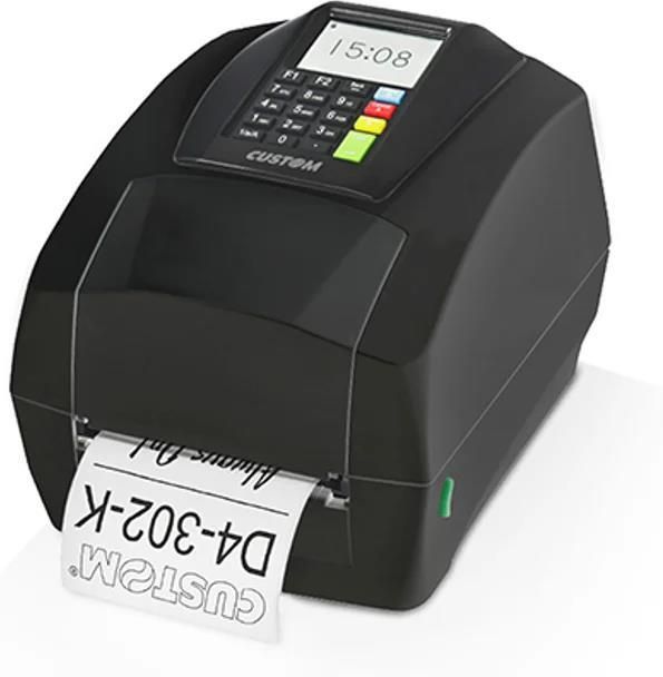 CUSTOM D4 302-K. Technologia druku: bezpośrednio termiczny/termotransferowy, Model: Drukarka POS, Maksymalna rozdzielczość: 203 x 203 DPI. Maksymalna średnica rolki: 12,7 cm, Maksymalna szerokość drukowania: 10,4 cm, Maksymalna długość nośników: 3,81 m. Technologia łączności: Przewodowa, Złącze USB: USB Typu-A, Standardowe interfejsy: RJ-45, Seryjny, USB. Prędkość transferu danych przez Ethernet LAN: 10,100 Mbit/s. Wbudowane kody kreskowe: Code 11, Code 128 (A/B/C), Code 39, Code 93, Macierz danych, EAN128, EAN13, EAN8, MaxiCode,..., Pojemność pamięci RAM: 0,128 GB