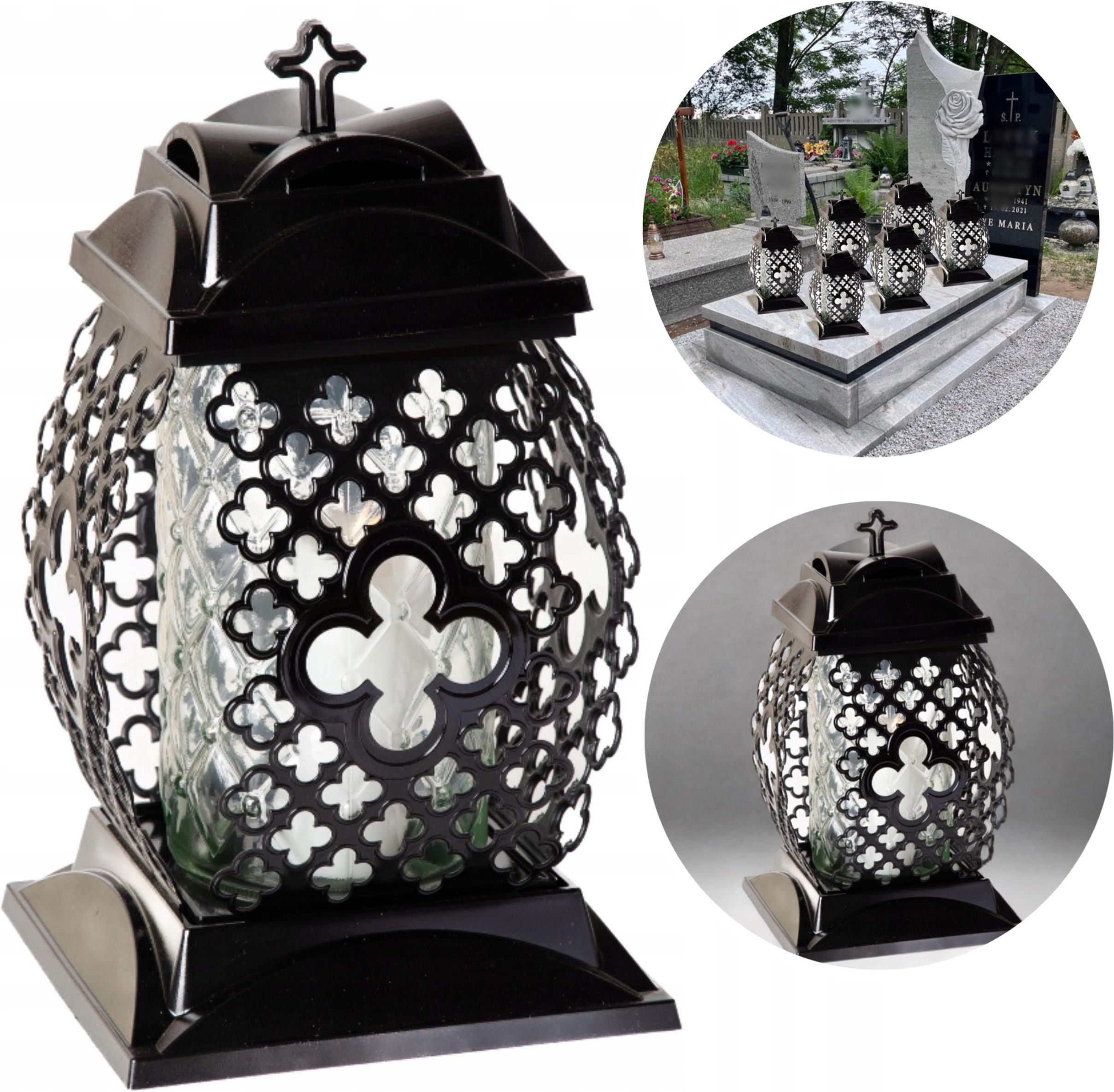 Czarny Znicz Ażur Krzyż Całoroczny Szklany Ozdobny 2025 Więcej Niż 75h 33cm Gdynia