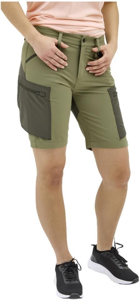 Wygodne szorty turystyczne z rozciągliwego materiału. Poddane wodoodpornej impregnacji. Guma w pasie i wiele kieszeni zapinanych na zamek błyskawiczny.