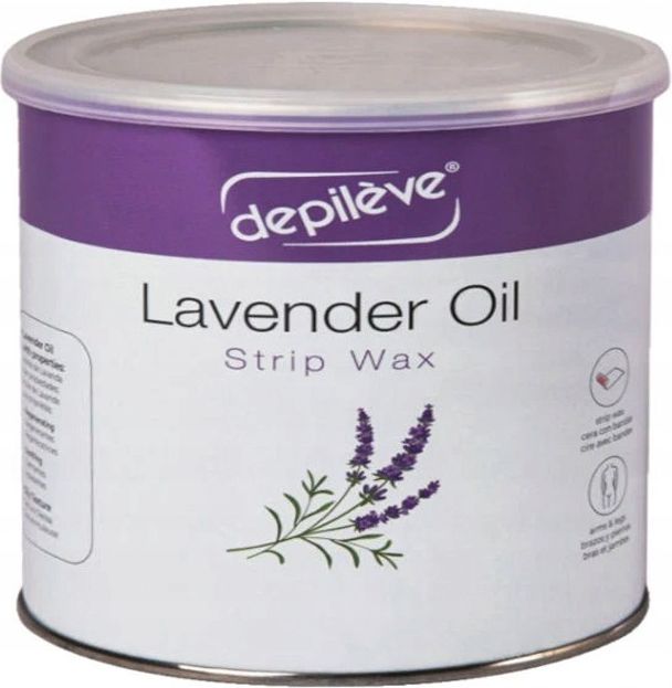 Depileve Wosk do depilacji miękki Lawendowy 400g Wosk miękki Lawendowy posiada kremową konsystencję, ułatwiającą przeprowadzenie zabiegu. Sprawdza się zarówno do depilacji okolic wrażliwych (bikini, twarz), jak i dużych powierzchni skóry. Posiada w składzie olejek lawendowy i dwutlenek tytanu, które zmniejszają ryzyko powstawania podrażnień. Efekty utrzymują się nawet do 3 tygodni. Produkt przeznaczony do nakładania szpatułką. Zastosowanie profesjonalna depilacja, do włosów krótkich i mocnych, dla każdego rodzaju skóry, ze szczególnym uwzględnieniem skóry wrażliwej i skłonnej do podrażnień. Skład Olejek rycynowy - działanie zmiękczające skórę, Olejek lawendowy - działanie rozkurczające i antyseptyczne, Dwutlenek tytanu - składnik o działaniu ochronnym przed promieniowaniem UVA i UVB oraz jego szkodliwym wpływem. Sposób użycia Przed rozpoczęciem depilacji zaleca się wykonanie peelingu w miejscach poddawanych zabiegowi. Pojemnik z woskiem włożyć do podgrzewacza i podłączyć do prądu na około 20-30 min. Oczyścić i znieczulić skórę Lotionem Przed Depilacją, a następnie dokładnie osuszyć. Po skontrolowaniu konsystencji i temperatury wosku, nakładać szpatułką zgodnie z kierunkiem wzrostu włosa. Nakleić pasek do depilacji. Ręką przytrzymać skórę poniżej wosku i lekko ją naciągnąć, drugą ręką energicznie oderwać pasek w kierunku przeciwnym do wzrostu włosa. W celu złagodzenia bólu, po oderwaniu wosku należy mocno przycisnąć dłoń do depilowanego miejsca. Pozostałości po wosku należy zmyć Olejkiem Po Depilacji. Po zakończonej depilacji zaaplikować Mleczko Po Depilacji w celu złagodzenia bólu oraz Krem Po Depilacji zapobiegający wrastaniu włosków. Opakowanie: 400 g