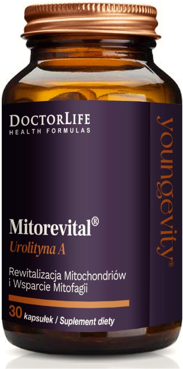 Suplement diety Mitorevital Urolityna A zawiera m.in. Urolityna A z owoców granatowca właściwego. Preparat zaleca się wszystkim osobom, które chcą uzupełnić codzienną dietę w powyższe substancje. Składniki: Urolityna A z owoców granatowca właściwego (Punica granatum),sproszkowany olej MCT (średniołańcuchowyche kwasy tłuszczowe) , otoczka kapsułki (hydroksypropylometyloceluloza). 1 kapsułka zawiera: urolityna A 250mg z fermentowanych owoców granatowca własciwego. Masa netto: 10 gramów. Właściwości: Do 30 roku życia nasze komórki chronią się przed tym spadkiem, stymulując selektywny recykling (oczyszczanie) starych lub uszkodzonych mitochondriów w nowe i zdrowe. Proces ten znany jest jako mitofagia. Mitofagia staje się mniej wydajna wraz z wiekiem. Urolityna A (UA) metabolit pochodzący z mikroflory elagitanin składników występujących głównie w granatach, która może przywrócić zdrowe funkcje mitochondriów. Ponieważ dieta, wiek, geny oraz choroby wpływają na skład mikrobiomu jelitowego, ludzie wytwarzają urolitynę A w różnym tempie, a tylko ok. 10 % osób wytwarza ją wystarczającej ilości. Mitorevital® UA wysoce czystą Urolityna A, która pobudza mitofagię, czyli proces niszczenia niewłaściwych mitochondriów i "rewitalizuje" zdolność komórek do recyklingu wadliwych mitochondriów. Zalecane dzienne spożycie: dorośli: 1 kapsułka rano, druga wieczorem z jedzeniem. Na podstawie wyników badań klinicznych zalecamy codzienne stosowanie przez okres próbny 8-12 tygodni. Przeciwwskazania: Nadwrażliwość na którykolwiek ze składników preparatu. Nie stosować u dzieci, kobiet w ciąży i w trakcie laktacji. Efektem oczyszczania komórkowego może być przejściowy ból głowy, uczucie zmęczenia i senność. Przechowywanie: Przechowywać w temp. pokojowej (do 25C) w suchym miejscu sposób niedostępny dla małych dzieci. Ważne informacje: Nie należy przekraczać zalecanej porcji do spożycia w ciągu dnia. Suplement diety nie może być stosowany jako substytut (zamiennik) zróżnicowanej diety ani aktywnego trybu życia. Utrzymanie prawidłowego stanu zdrowia wymaga zrównoważonego i zróżnicowanego odżywiania i prowadzenia zdrowego trybu życia. Istnieje wiele czynników ryzyka choroby. Zmiana jednego z tych czynników ryzyka może wywierać korzystny wpływ lub nie wywierać go. Producent: DoctorLife Ltd Sackville St, Mayfair, London W1S 3AX
