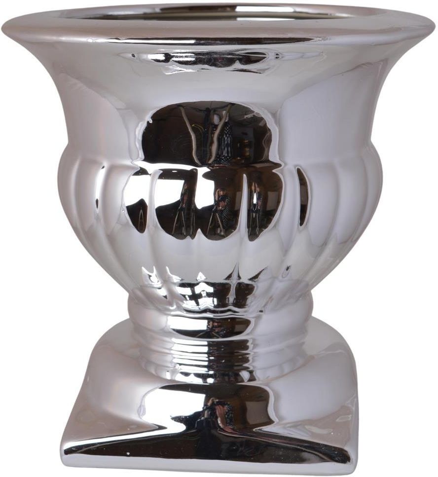 Doniczka dekoracyjna srebrna Stan: Nowy Kolory: Srebrny Wymiary:16,5x16,5x16,5 cm Materiał: ceramika Kolor: srebrny