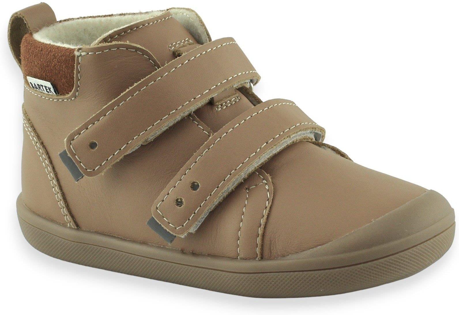 Dziecięce buty typu barefoot z giętką i elastyczną podeszwą, ocieplone kocem obuwniczym. Piękny beżowy kolor będzie pasować i chłopcom i dziewczynkom. Zapięcie na rzep ułatwi dopasowanie do małych stópek i ułatwi zakładanie. Idealne do nauki chodzenia.