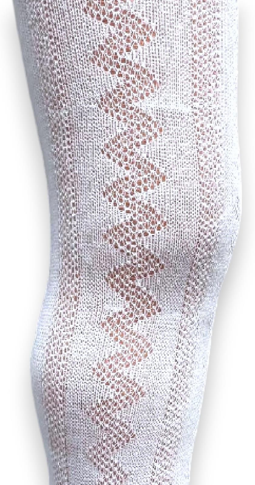 Żakardowe dziewczęce rajstopy w białym kolorze z subtelnym wzorkiem. Idealne na szkolne akademie, przedszkolne przedstawienia, komunie oraz wyjątkowe uroczystości. Doskonale sprawdzą się także na co dzień. Skład: - 78% Bawełna, 20% Poliamid, 2% Elastan