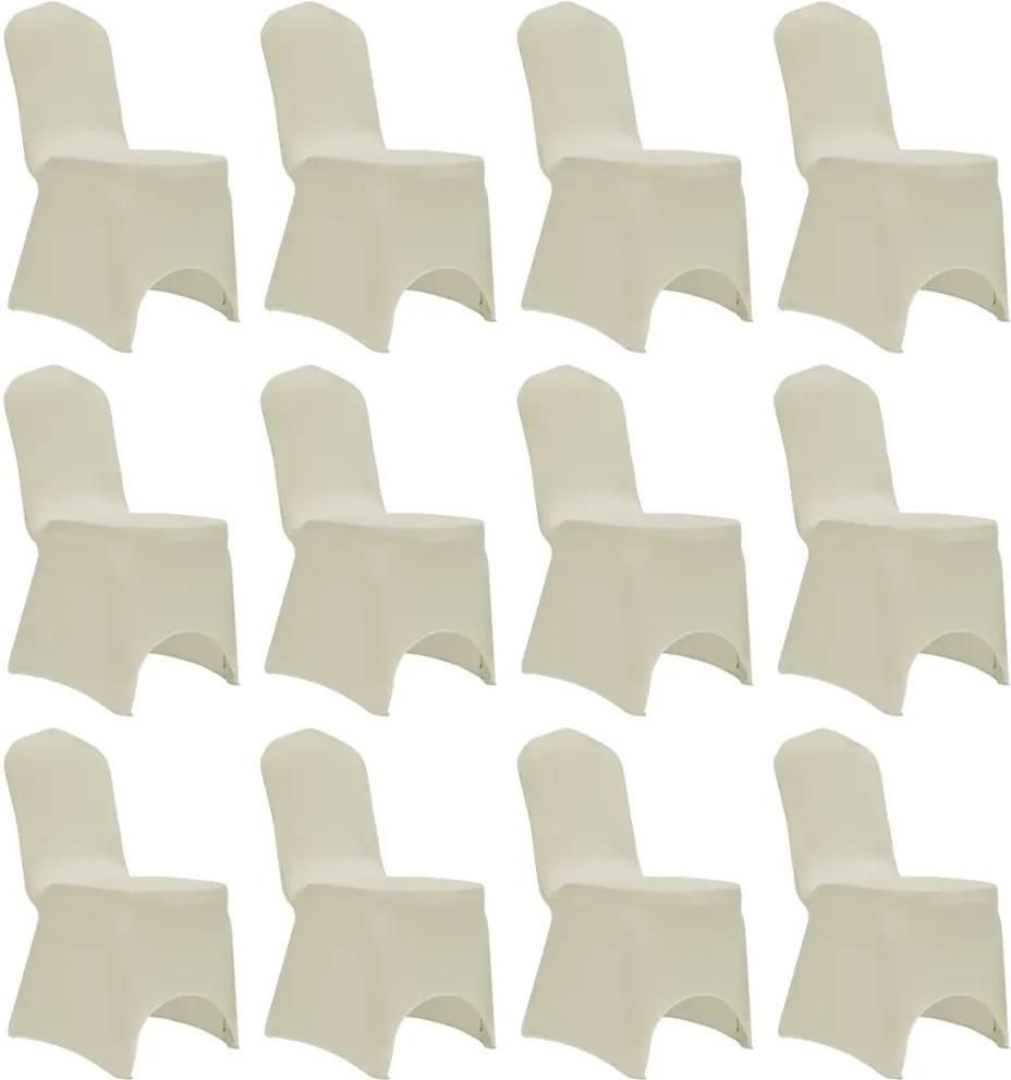 Elastyczne pokrowce na krzesła, kremowe, 12 szt. Elastyczne pokrowce na krzesła będą ozdobą podczas różnych imprez, takich jak śluby, bankiety, konferencje, targi itp. Pokrowiec pasuje do prawie każdego rodzaju krzeseł o wysokości do 100 cm. Wykonany został z elastycznego materiału zawierającego …