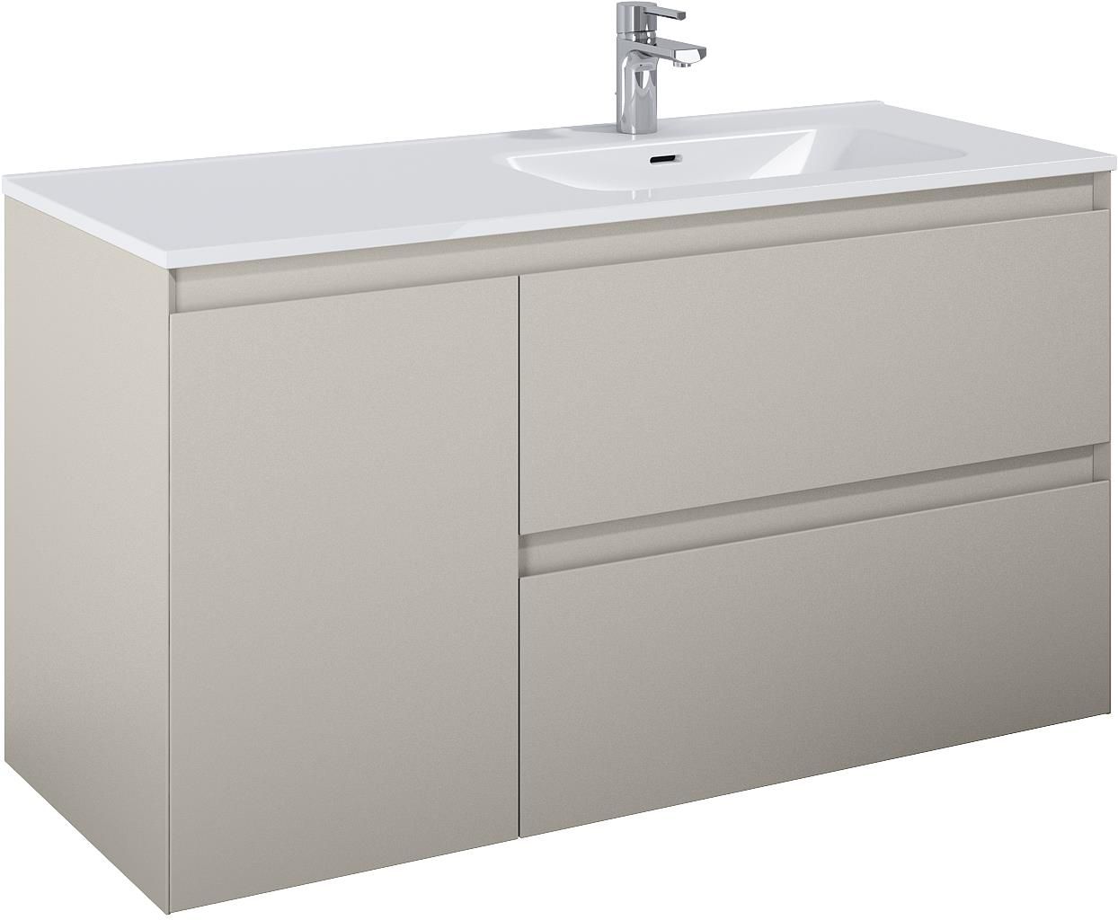 Szafka podumywalkowa z koszem cargo 120x63,5x45,8 cm ELITA SPLIT 120 z prawej fume matt RE011205257020 Rozmiar: 120 x 63.5 x 45.8 (cm) Waga: 49 (kg) Kod produktu: 169020 Dostępne wersje kolorystyczne: Opis produktu: Szafka podumywalkowa Split 120, składa się z szafki podumywalkowej 80 i komody 40 z koszem cargo, umieszczonej po lewej stronie. Szafka podumywalkowa z 2 szufladami z metalowymi bokami, z pełnym wysuwem i systemem system soft - close. Kosz cargo w komodzie posiada wytrzymałe prowadnice o udźwigu do 20 kg, z pełnym wysuwem i systemem soft-close. Szafka wykonana z materiałów wysokiej jakości, front i korpus z płyty laminowanej, lakierowanej w kolorze fume matt. Frezowane uchwyty wyprofilowane pod kątem 45°. Szafka przystosowana do łączenia z blatami ElitStone.