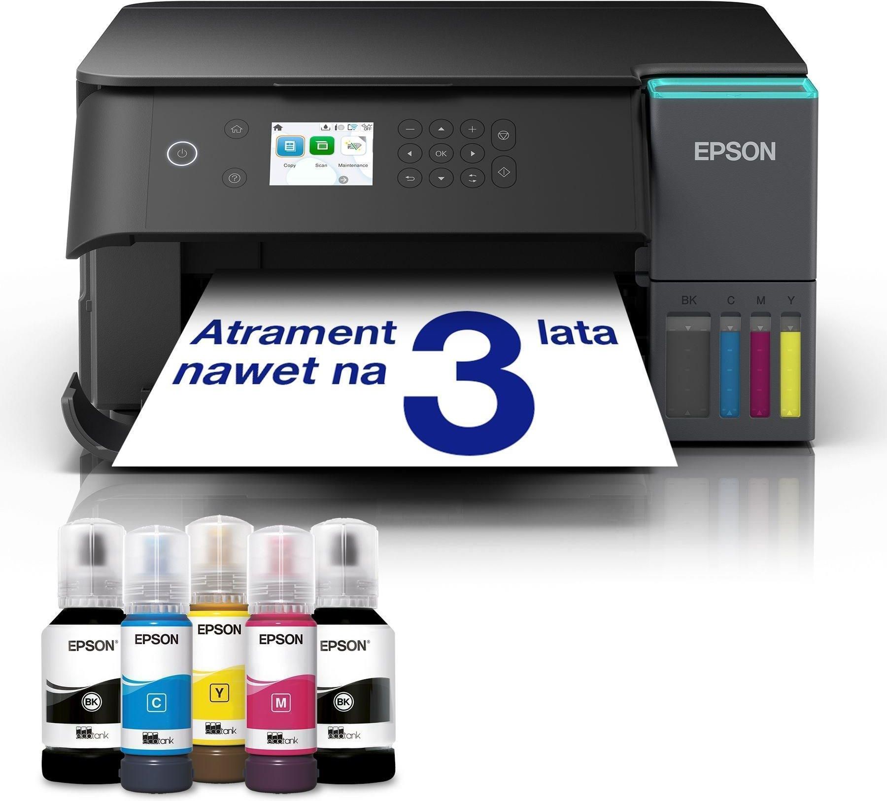 EcoTank L6360 Oszczędność do 95% na kosztach atramentu* dzięki drukarce EcoTank ze stałym zasilaniem w atrament Ta drukarka atramentowa A4 z możliwością uzupełniania zbiorników na atrament, Wi-Fi oraz funkcjami kopiowania i skanowania jest idealna dla każdego, kto szuka taniego rozwiązania do drukowania. Ogranicz koszty o 95%* Wyjątkowo niski koszt druku Drukowanie dwustronne oraz kopiowanie i skanowanie Uzupełniane pojemniki na atrament Oszczędzaj do 95% na kosztach drukowania* dzięki drukarkom Epson EcoTank bez kartridżów. Zintegrowane pojemniki na atrament są łatwe do napełniania dzięki specjalnie zaprojektowanym butelkom z atramentem. Ze względu na brak konieczności wymiany kartridżów jest to idealna drukarka dla wszystkich wymagających wysokiej jakości druku przy nieprawdopodobnie niskim koszcie wydruku strony. Pożegnaj kartridże Drukarki EcoTank zapewniają bezproblemowe drukowanie w domu i w biurze – pojemniki na atrament o dużej pojemności można uzupełniać bez bałaganu, a butelki z blokadą zaprojektowano tak, aby dany kolor atramentu można było wlać tylko do odpowiadającego mu pojemnika. Przedni wyświetlacz poziomu atramentu ułatwia sprawdzenie, kiedy należy uzupełnić wkład, a stylowe niebieskie światło na pokrywie zbiornika atramentu pozwala na szybkie sprawdzenie stanu drukarki. Nieustanne oszczędzanie Ta ekonomiczna drukarka pozwala zaoszczędzić do 95% na kosztach druku* i zawiera w zestawie atrament wystarczający nawet na 3 lata*. Dołączony zestaw butelek z atramentem umożliwia wydrukowanie do 15 100 stron w trybie czarno-białym i 5500 stron w kolorze*, co odpowiada 63 kartridżom z atramentem*! Duże możliwości Tylny podajnik papieru na 250 arkuszy, drukowanie zdjęć bez marginesów (do formatu A4) i duża szybkość drukowania sięgająca 18 stron na minutę* ułatwiają wykonywanie różnych zadań. Dodatkowe korzyści obejmują łatwy w obsłudze wyświetlacz LCD o przekątnej 6,1 cm, automatyczne drukowanie dwustronne i wygodną tacę wyjściową, która automatycznie otwiera się podczas drukowania. Okno multimediów umożliwia również szybkie sprawdzenie poziomu papieru. Stworzone, by trwać Technologia druku niewymagająca użycia ciepła oznacza, że zintegrowana z drukarką głowica będzie działać przez cały okres eksploatacji drukarki*, dzięki czemu nie trzeba będzie wymieniać części, a zużycie energii będzie mniejsze*. Została ona również zaprojektowana tak, aby nie dochodziło do zatykania dyszy. Drukarka jest bardzo wytrzymała, a dodatkowo została objęta standardową gwarancją na 100 000 stron (lub 1 rok)*. Nowoczesna i wszechstronna Dzięki kompaktowej konstrukcji oraz łączności Wi-Fi, Wi-Fi Direct i Ethernet można z łatwością połączyć drukarkę z istniejącym sprzętem domowym i drukować z urządzeń mobilnych, tabletów i laptopów*. Dzięki obsłudze dwóch pasm i systemów mesh Wi-Fi zoptymalizowano szybkość i niezawodność połączenia bezprzewodowego drukarki, aby zapewnić szybkie i bezproblemowe drukowanie. Aplikacja Epson Smart Panel Ta prosta w obsłudze aplikacja pozwoli Ci w pełni kontrolować drukarkę z poziomu urządzenia mobilnego*. Drukuj, kopiuj i skanuj dokumenty oraz zdjęcia, konfiguruj, monitoruj i zarządzaj drukarką z poziomu urządzenia mobilnego.