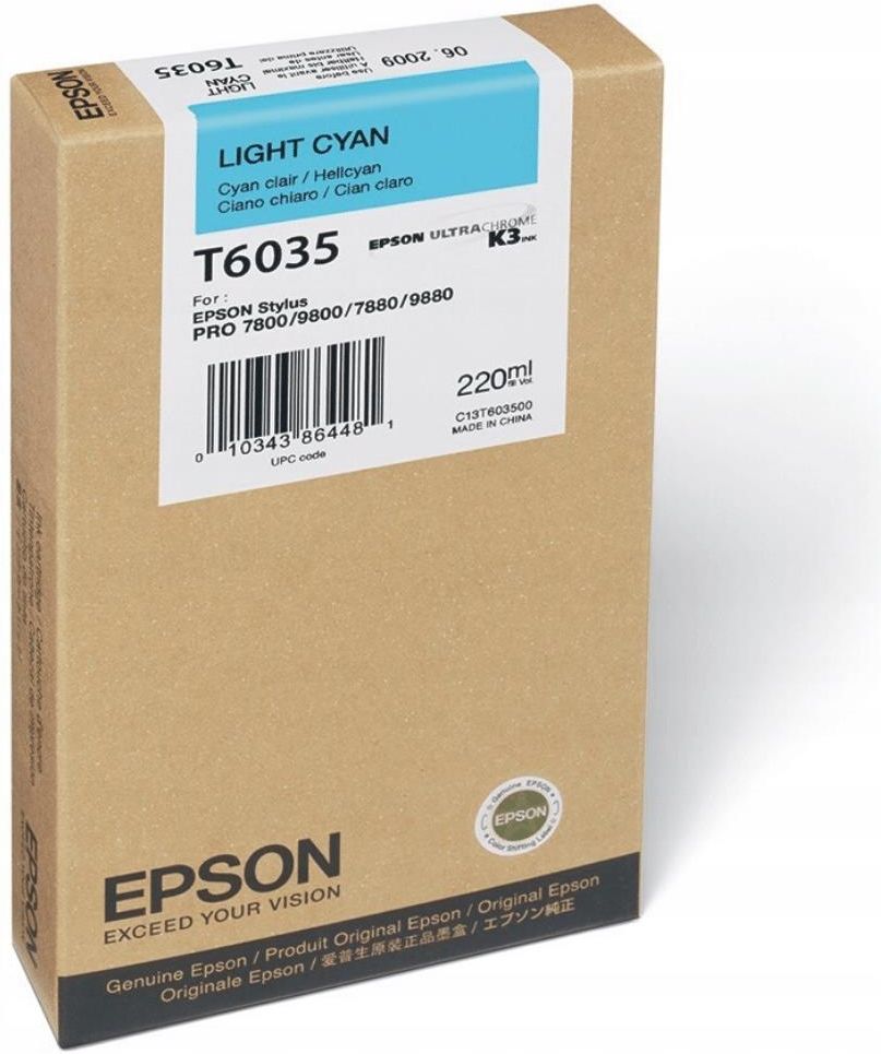 NOWY Tusz Epson T6035 C13T603500 Light Cyan Stylus Pro 7800 9880 Oryginalny tusz Epson T6035 Light Cyan Tusz Jasny Niebieski 220ml do drukarki Epson Stylus Pro 7800 Oryginalny atrament Epson T6035 UltraChrome K3 Wkład C13T603500 do gładkich gradacji nieba Twórz zapierające dech w piersiach …