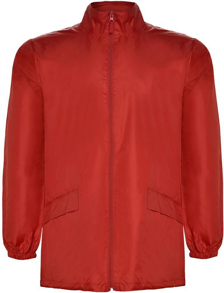 Wodoodporny płaszcz przeciwdeszczowy. Wysoki kołnierz i składany kaptur z regulowanym sznurkiem. Zamek błyskawiczny z przodu z dopasowanym ściągaczem. Dwie boczne kieszenie z klapką. Elastyczne mankiety. Elastyczny pasek wewnątrz kieszeni do składania i przechowywania. Model wodoodporny.