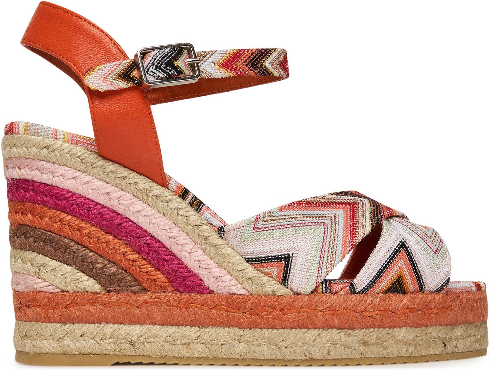 Dodaj do swojej kolekcji odrobinę luksusu z damskimi espadrylami M Missoni! Wykonane z wysokiej jakości materiału tekstylnego, oferują nie tylko stylowy wygląd, ale również wygodę noszenia. Koturn zapewnia subtelne uniesienie, które wysmukla sylwetkę, jednocześnie pozostając komfortowym wyborem na co dzień. Skórzane wnętrze podnosi standard użytkowania, gwarantując przyjemność na każdym kroku. Dodatkowo, w zestawie znajdziesz worek przeciwkurzowy – idealny do przechowywania butów w nienagannym stanie. Te espadryle to synonim elegancji i funkcjonalności!