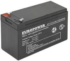 Akumulator EuroPower EP-7,2 Ah 12V Akumulator EuroPower 7,2 Ah 12 V, szczelny, bezobsługowy, ołowiowo-kwasowy, wykonany w technologii AGM (elektrolit uwięziony w separatorach z włókna szklanego) o projektowanej żywotności do 6-9 lat. Waga 2,6 kg. Wymiary 98x151x65. Zastosowanie do central alarmowych, zasilaczy buforowych, central telefonicznych, UPS.